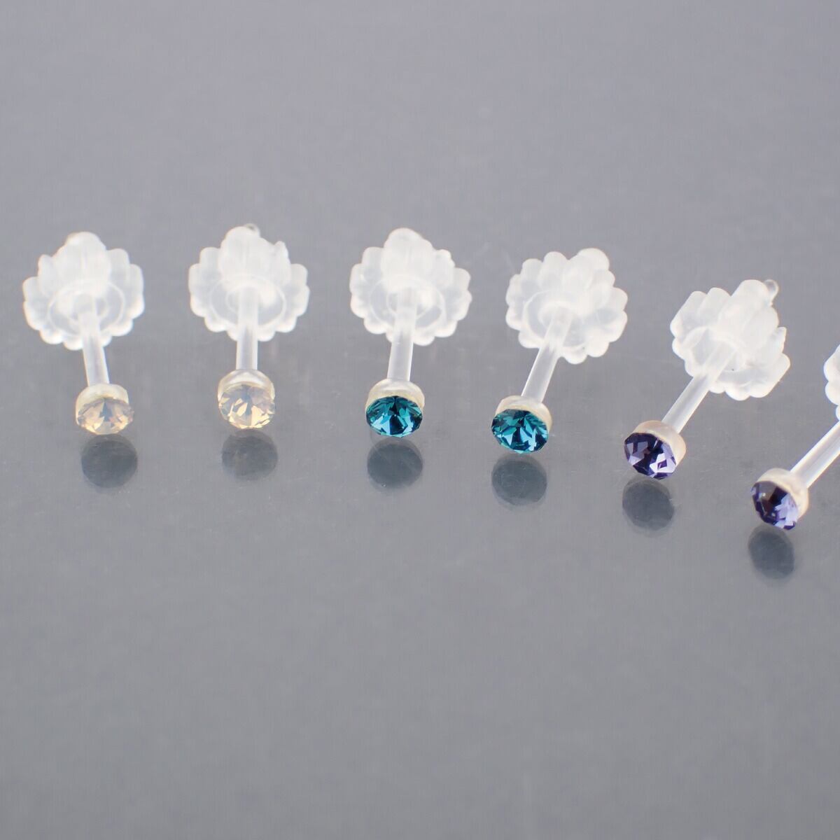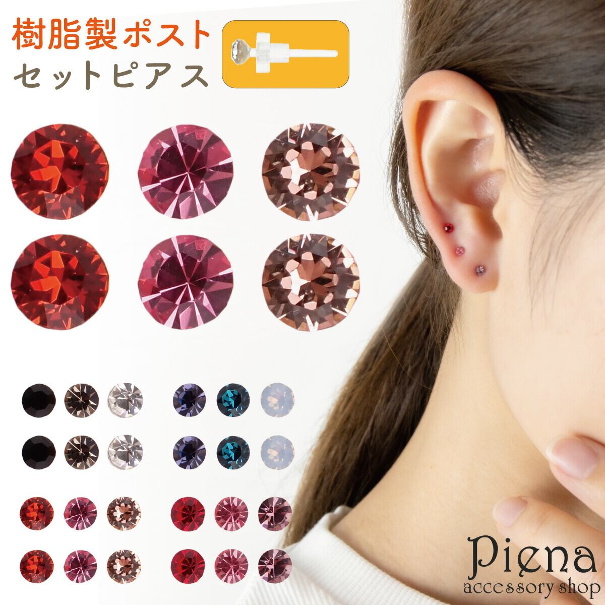 ピアス レディース シンプルなカラフルラインストーンの 6点セット直径2ミリ ポリプロピレン樹脂製ポスト 樹脂ピアス ワンストーン 一石 一粒 ノンアレルギー カラーバリエーションは4つ メール便 送料無料 大人気