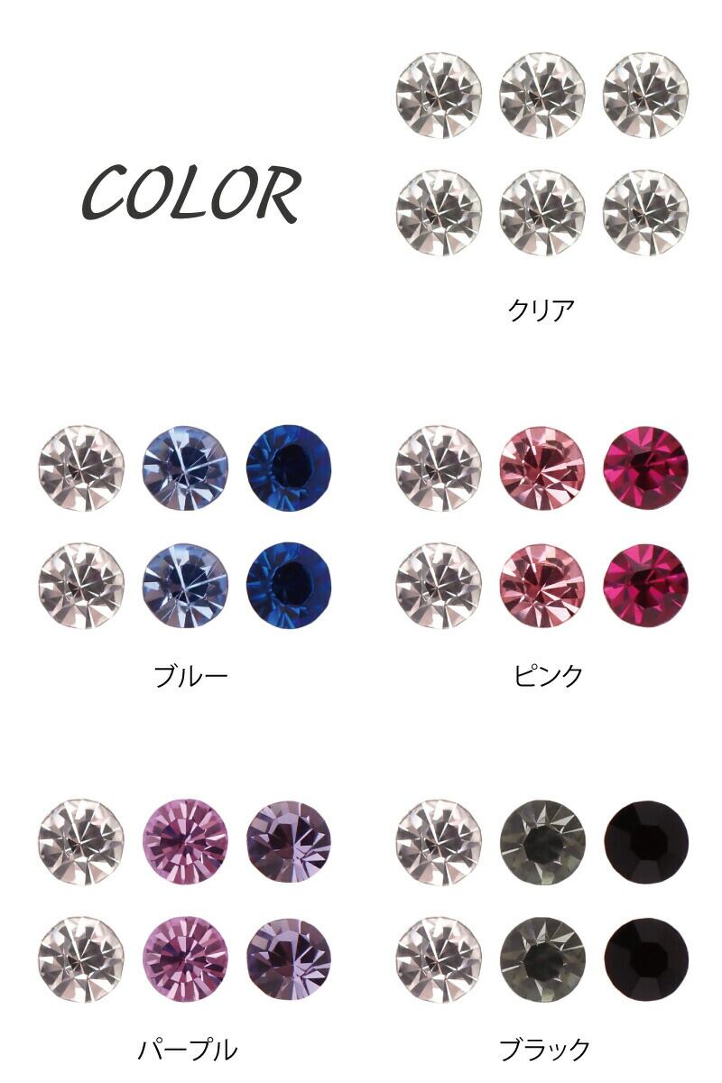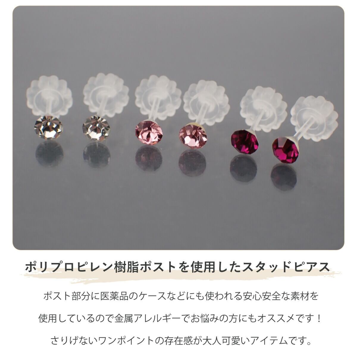 ピアス レディース 3ミリスワロフスキーの6個セット 日本製 樹脂製スリムポスト 低金属アレルギー 1粒 ワンストーン 一石 一粒 シンプル 大人かわいい 小さめメンズ プレゼント用にも ギフト メール便 送料無料 春夏秋冬 大人気