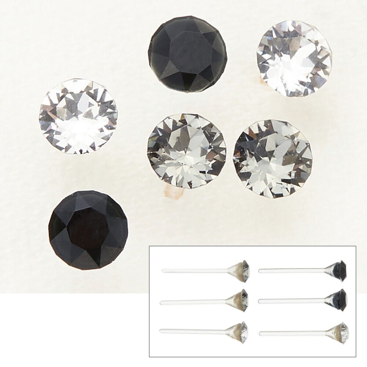 涼しげな輝きのスワロフスキーのノンアレルギースタッドピアスの6点セット。