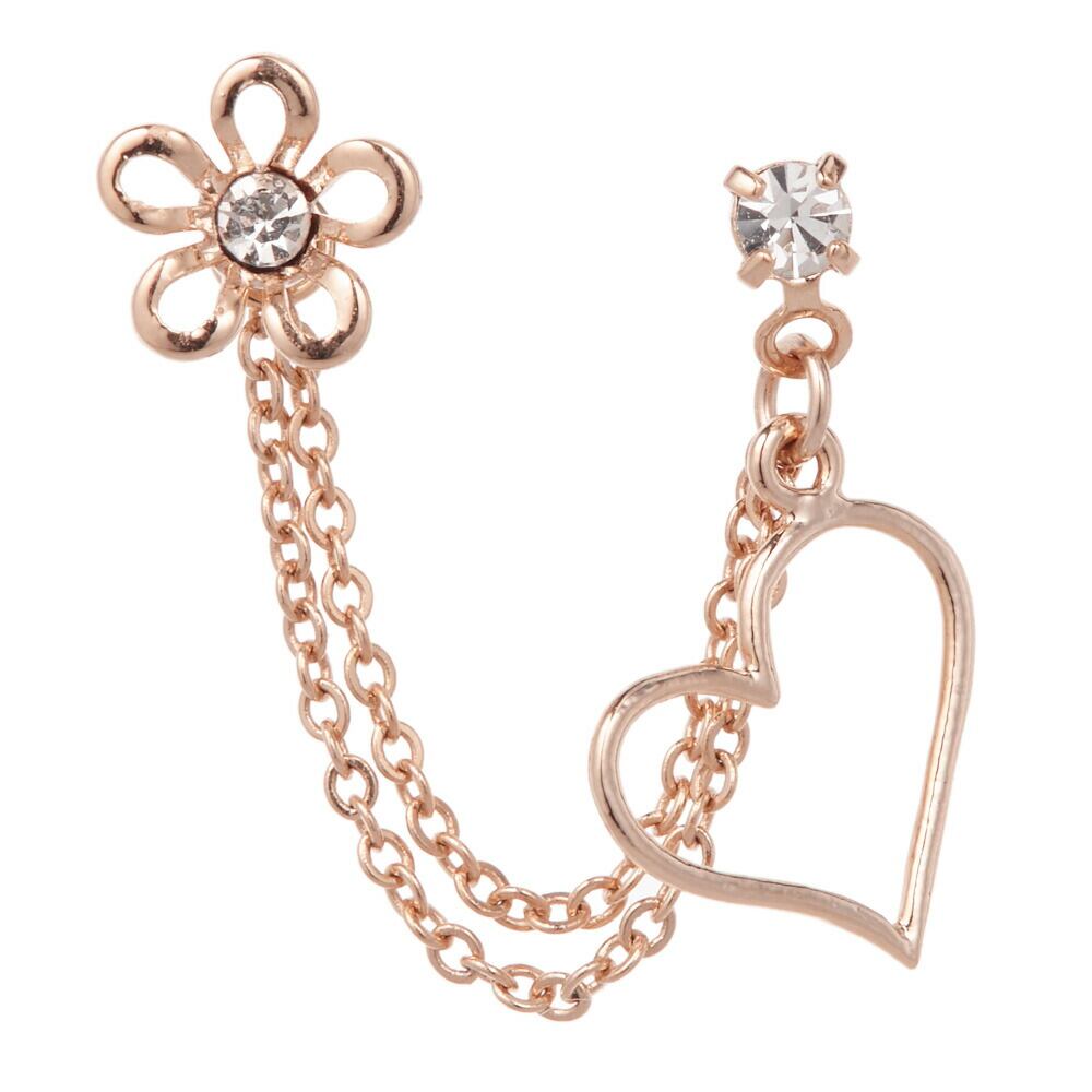 ピアス レディース オープンハート フラワー チェーンでつないだ2ホール チタン製ポスト 複数のホールのあるオシャレさん向け 金属アレルギー対応 メール便 送料無料 春夏秋冬 大人気