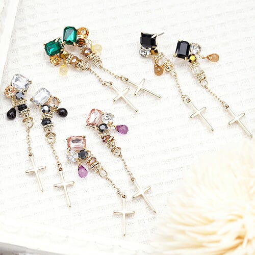 ピアス レディース スタッド チタン製ポスト 金属アレルギー対応 ビジューからクロスチャームフリンジ 華やか メール便 送料無料 プレゼント 秋冬 大人気