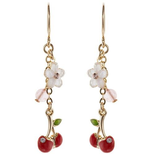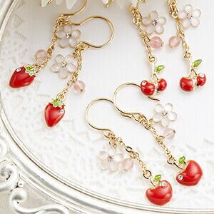 ピアス レディース フック 天然石 日本製 フルーツチャーム ストーン フラワーチャーム デイリー ストロベリー アップル チェリー メール便 送料無料 プレゼント 秋冬 大人気