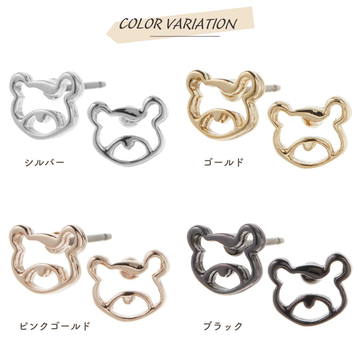 ピアス レディース 日本製 チタン製ポスト クマ 熊 ベア フレーム 透かし 動物 アニマル シンプル お肌に優しい金属アレルギー対応 オシャレ かわいい 大人可愛い プレゼント ギフト メール便送料無料
