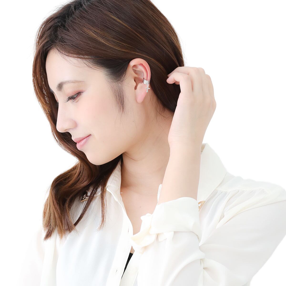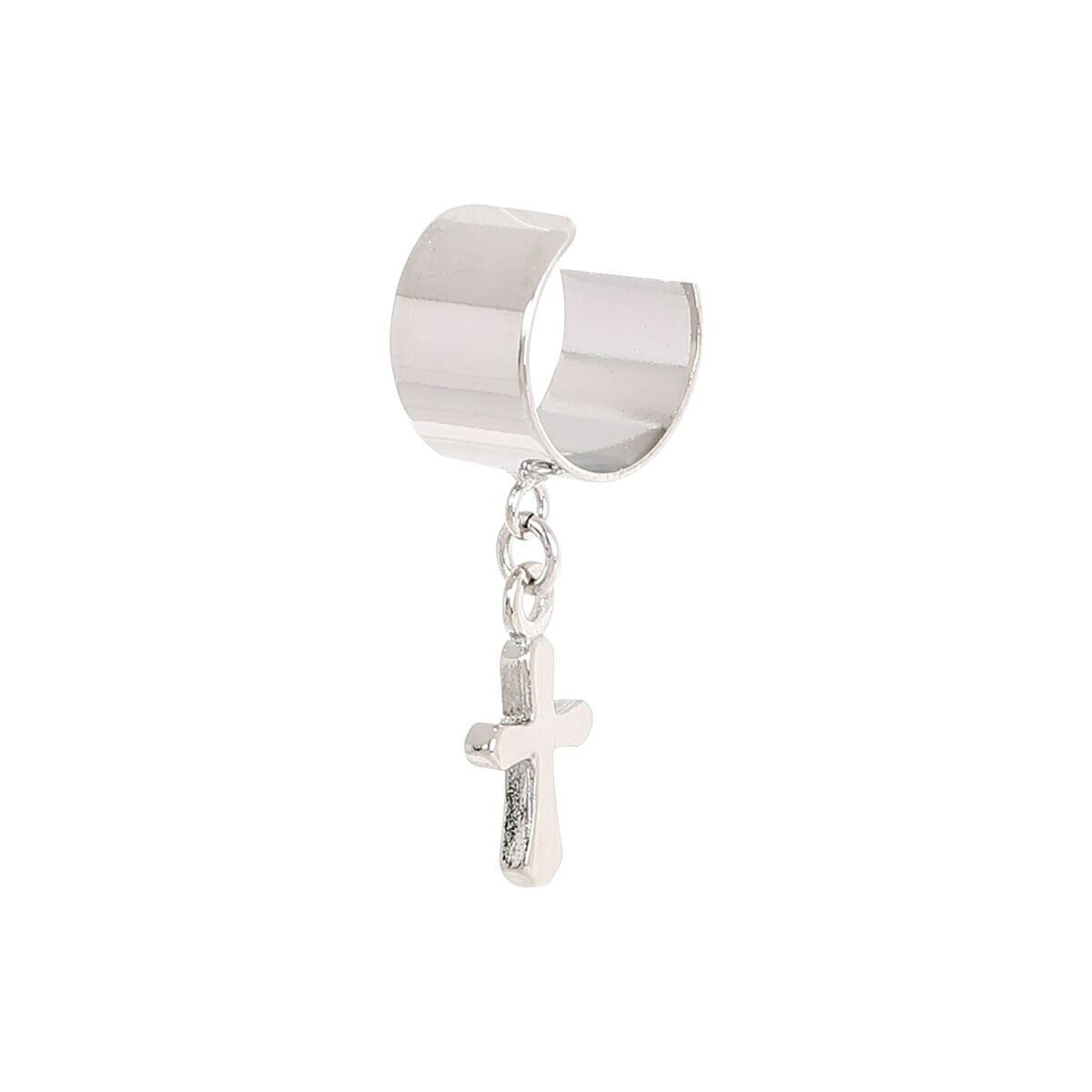 イヤーカフ レディース ニッケルフリー 十字架 クロス お肌に優しい 金属アレルギー対応 幅太め 1個売り ツヤあり 揺れる キリスト お守り シンプル 綺麗 おしゃれ かっこいい カジュアル 普段使い プレゼント ギフト メール便送料無料