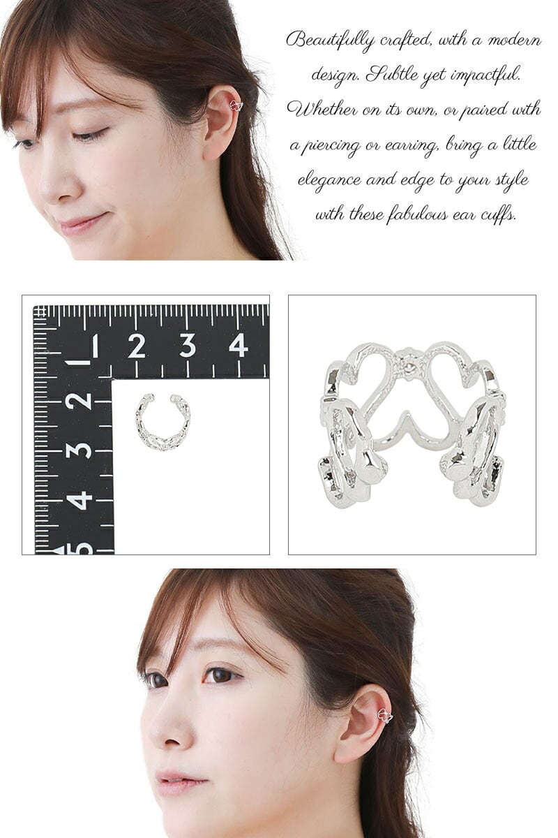 痛くなりにくい、透かし彫りのハートデザインが可愛い片耳用のイヤーカフです。