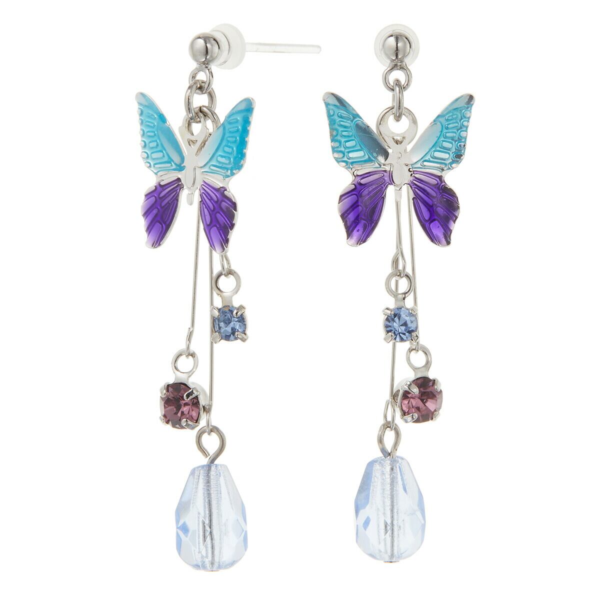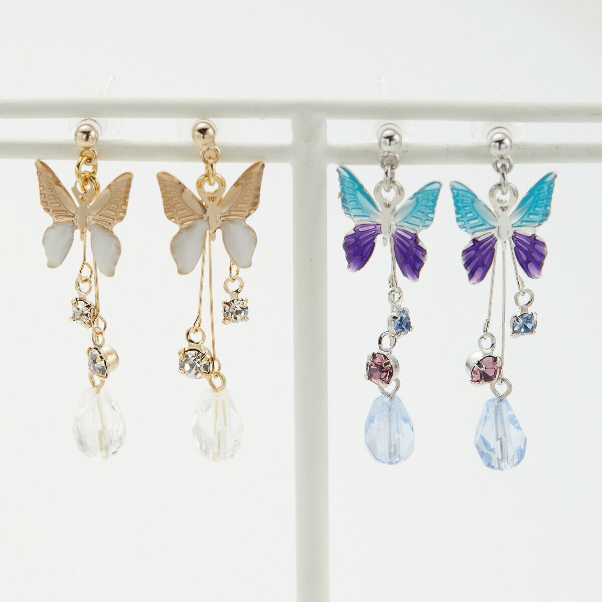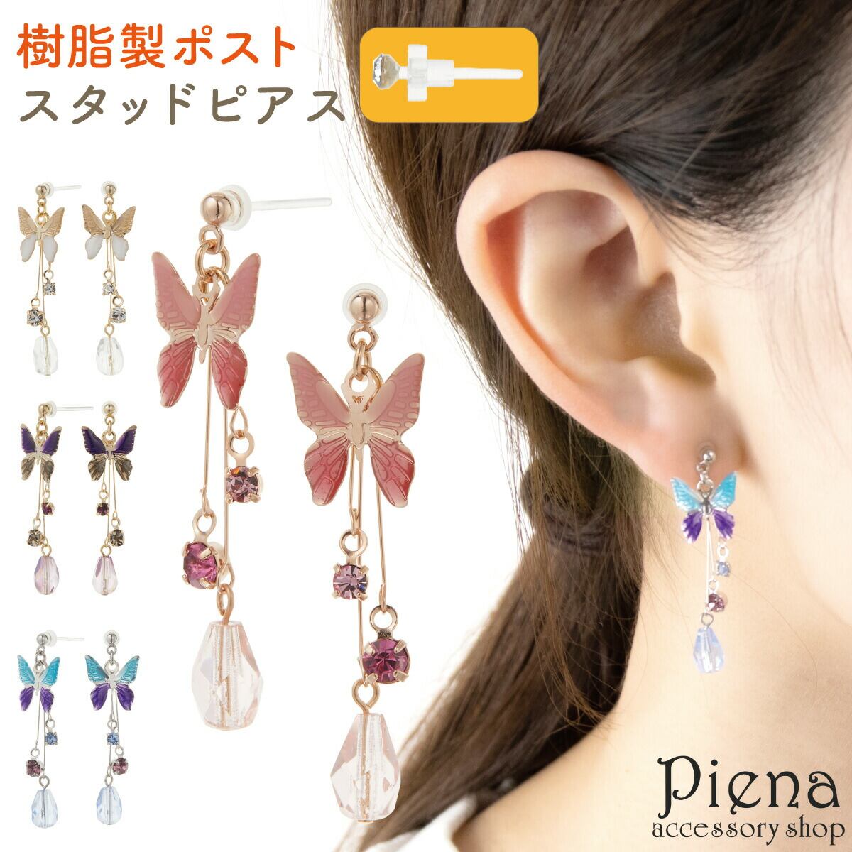 スタッドピアス レディース ノンアレルギー樹脂ポスト ワイヤーフリンジ バタフライ 蝶々 ちょう 揺れる キラキラ オシャレ かわいい メール便 送料無料 春夏秋冬 大人気