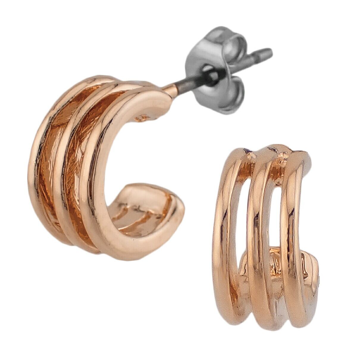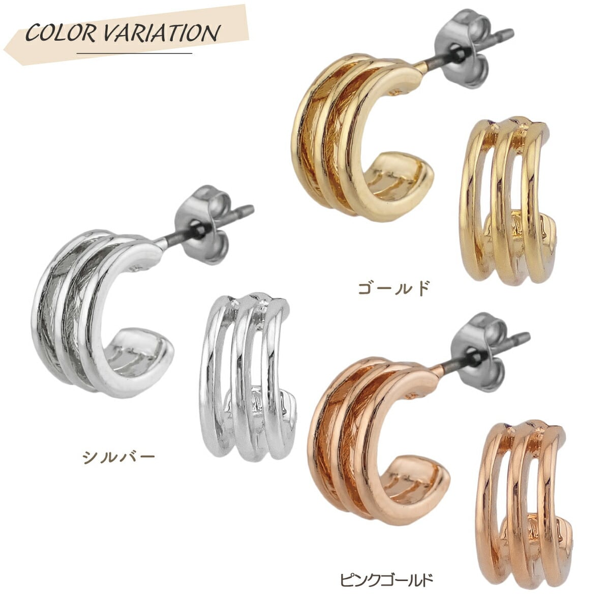 ピアス レディース 日本製 チタン製ポスト ニッケルフリー 3本ライン ハーフフープ C型 ミニ 小さめ 幅広 ワイド お肌に優しい 金属アレルギー対応 かわいい 大人可愛い パーティー オフィス 記念日 誕生日 プレゼント ギフト メール便送料無料