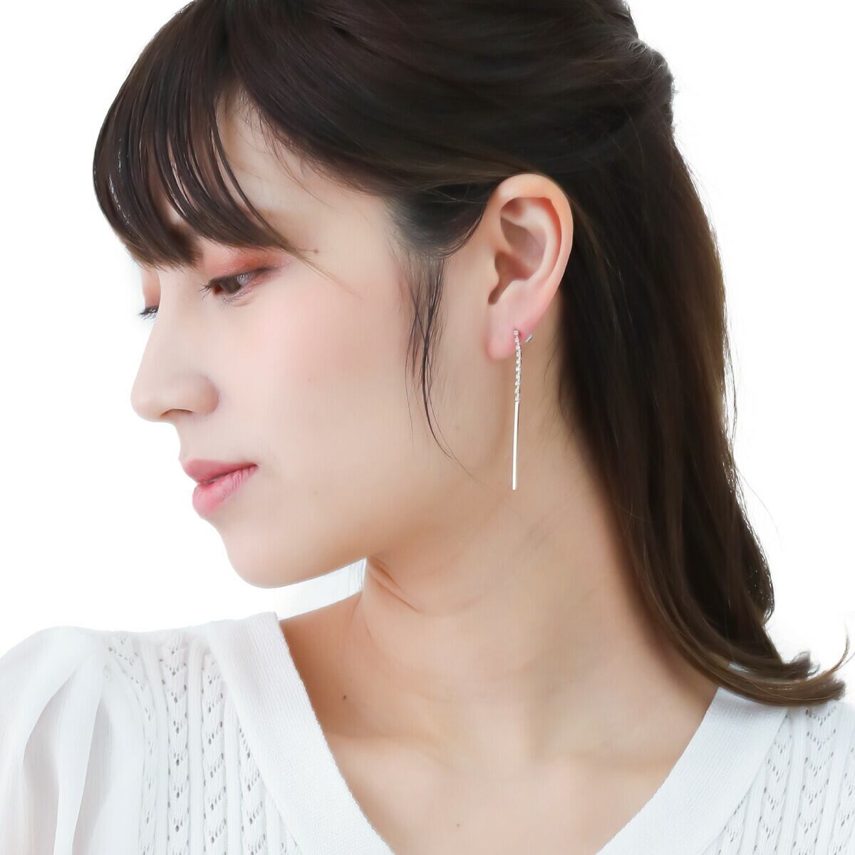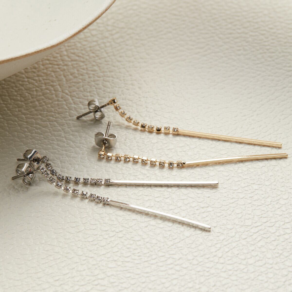ピアス レディース 両耳用 チタン製ポスト ロング バー ラインストーン 縦ライン 揺れる 華やか キラキラ パーティー お肌に優しい 金属アレルギー対応 誕生日 記念日 プレゼント ギフト メール便送料無料