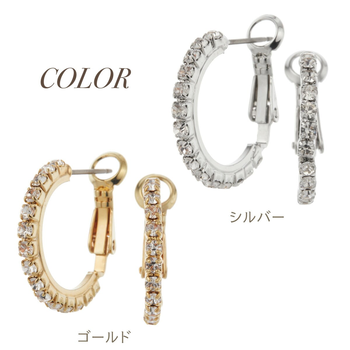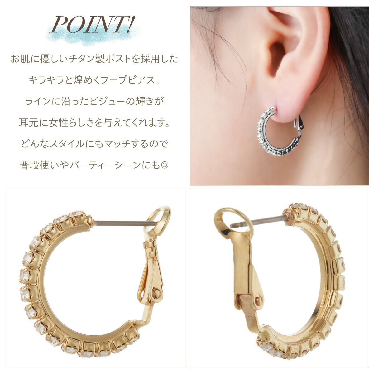 フープピアス レディース 両耳用 チタン製ポスト ニッケルフリー ラインストーン パヴェ キラキラ 華奢 細身 お肌に優しい 金属アレルギー対応 金アレ 上品 かわいい オシャレ パーティー 誕生日 記念日 プレゼント ギフト メール便送料無料