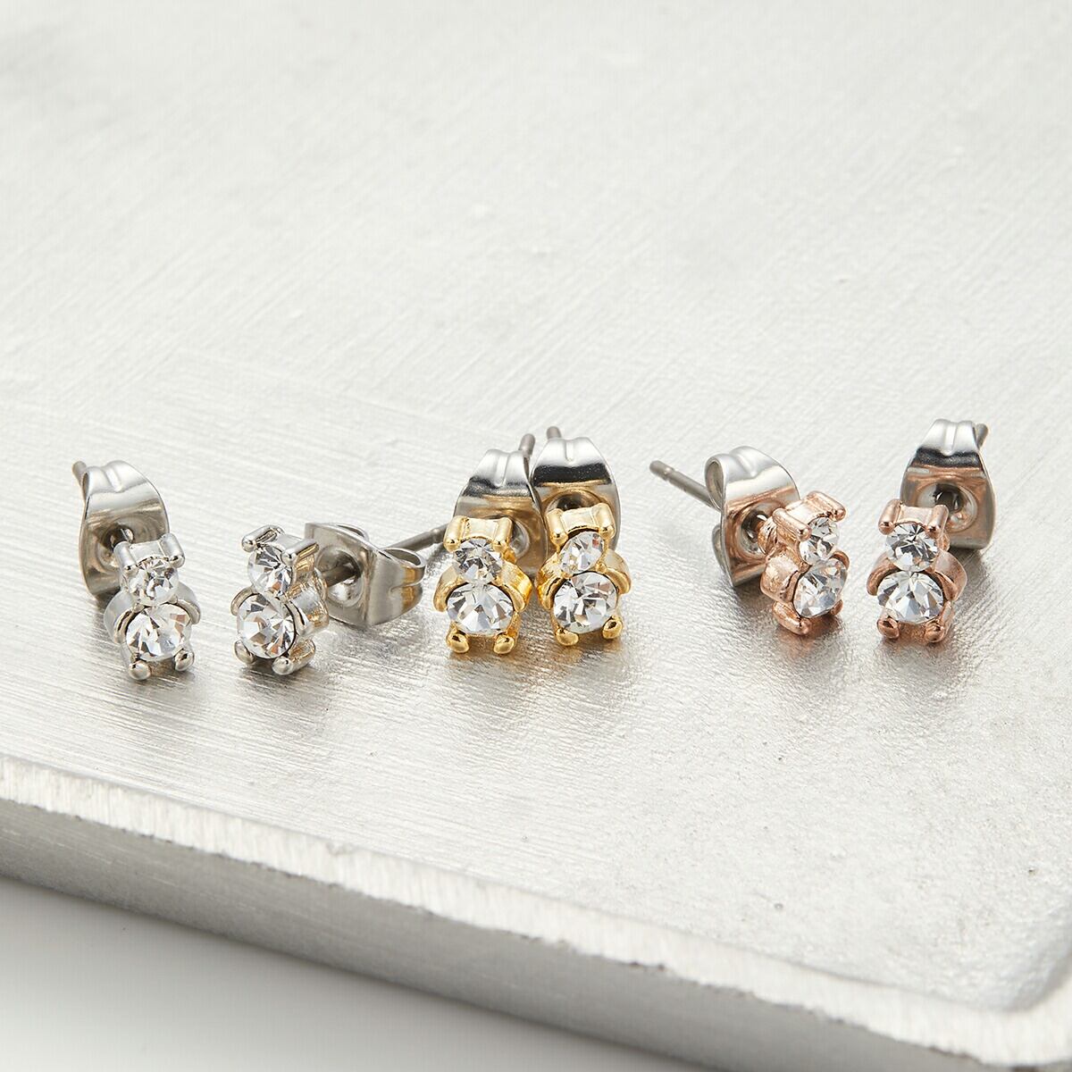 ピアス レディース 両耳用 日本製 チタンポスト ラインストーン ミニ くま ベア 動物 キラキラ 煌めく 輝く お肌に優しい 金属アレルギー対応 シンプル 可愛い 上品 おしゃれ パーティー 誕生日 記念日 プレゼント ギフト メール便送料無料
