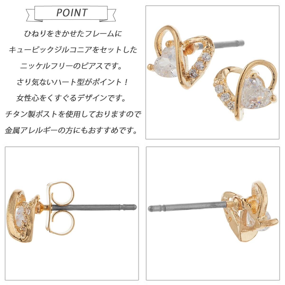 ピアス レディース 両耳用 キュービックジルコニア ニッケルフリー 左右対称 チタンポスト ミニ ハート キラキラ 煌めく 輝く お肌に優しい 金属アレルギー対応 シンプル 可愛い きれい 上品 おしゃれ パーティー 誕生日 記念日 プレゼント ギフト メール便送料無料