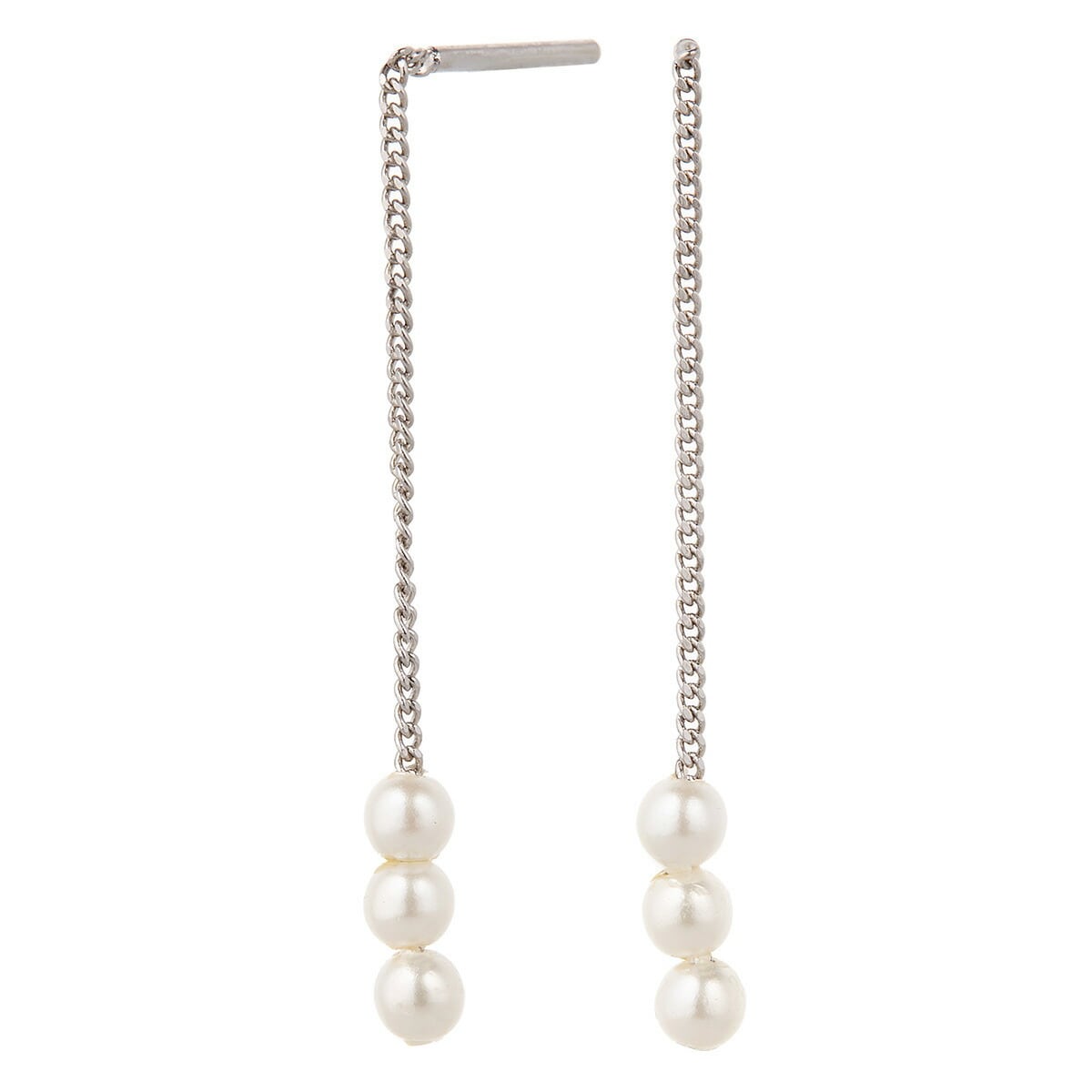 3粒のフェイクパールが、耳元で揺れて、さり気なく輝きます。