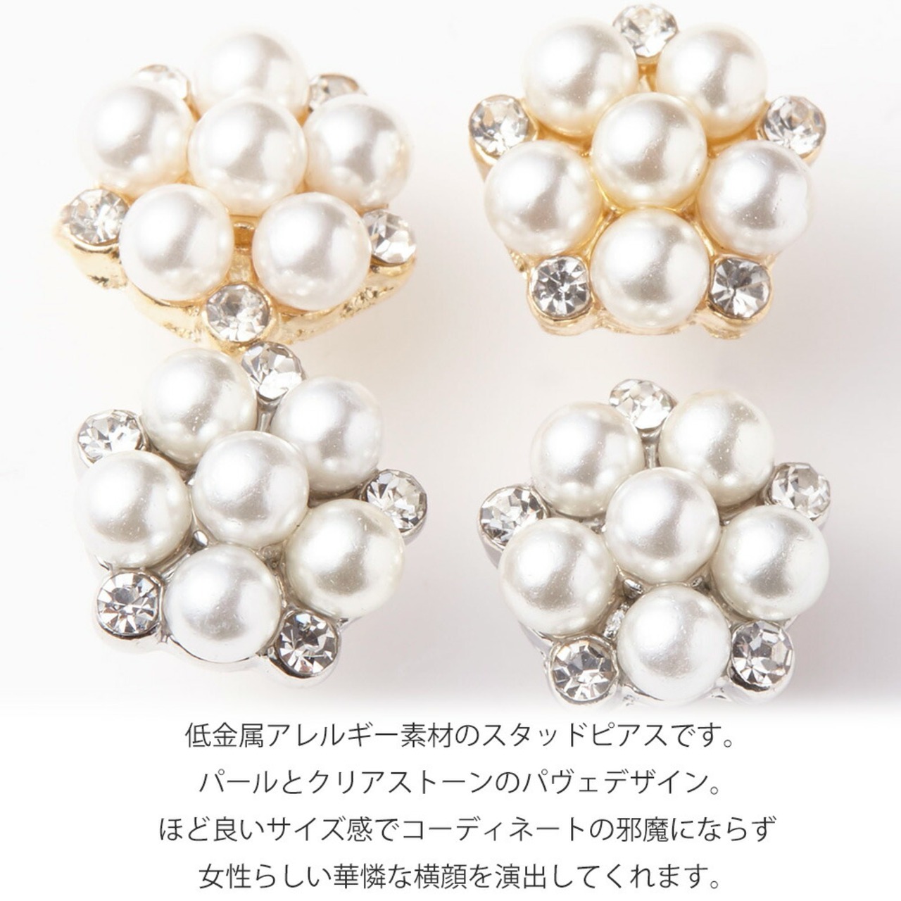ピアス レディース チタン製ポスト 金属アレルギー対応 パール フラワー お花 小振り ビジュー パヴェ シンプル 大人かわいい ガーリー フェミニン プレゼント メール便 送料無料 春夏秋冬 大人気