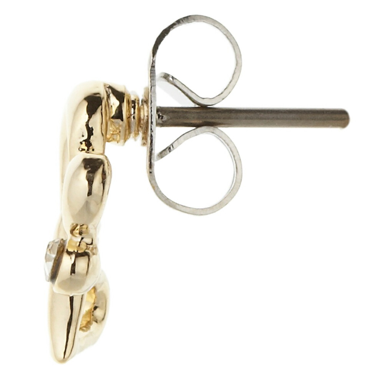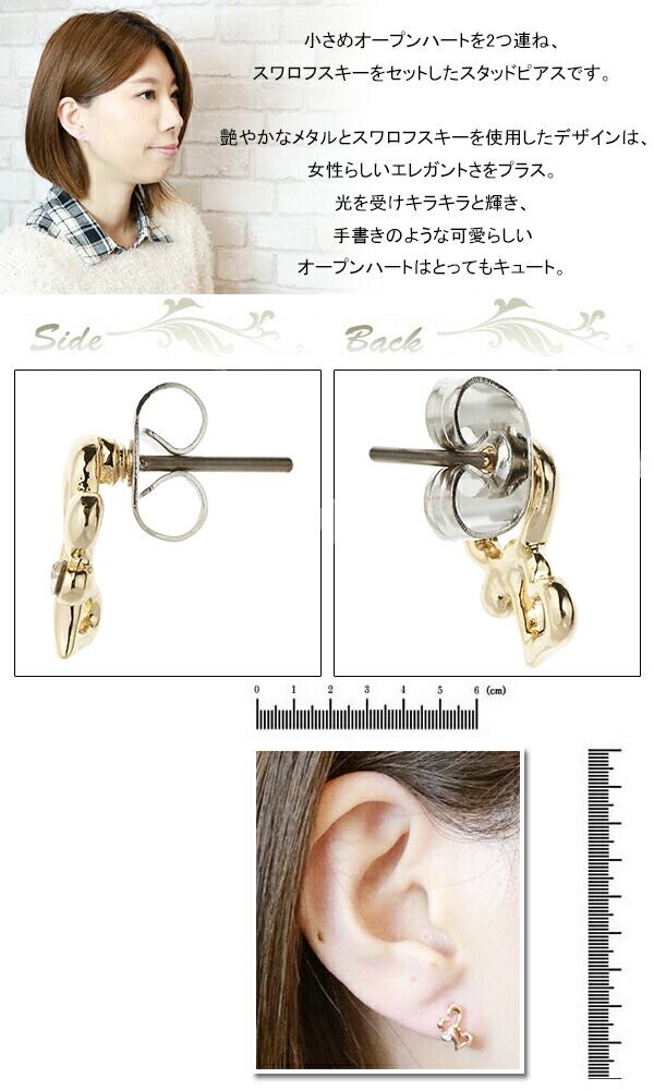 小さめオープンハートを2つ連ね、ラインストーンをセットしたスタッドピアスです。