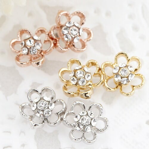 ピアス レディース スタッド チタン製ポスト お花モチーフ 中心に7石ストーン オープンフラワー ベーシック シンプル 定番 日本製 金属アレルギー対応 シルバー ゴールド ピンクゴールド メール便 送料無料 日本製 春夏秋冬 大人気