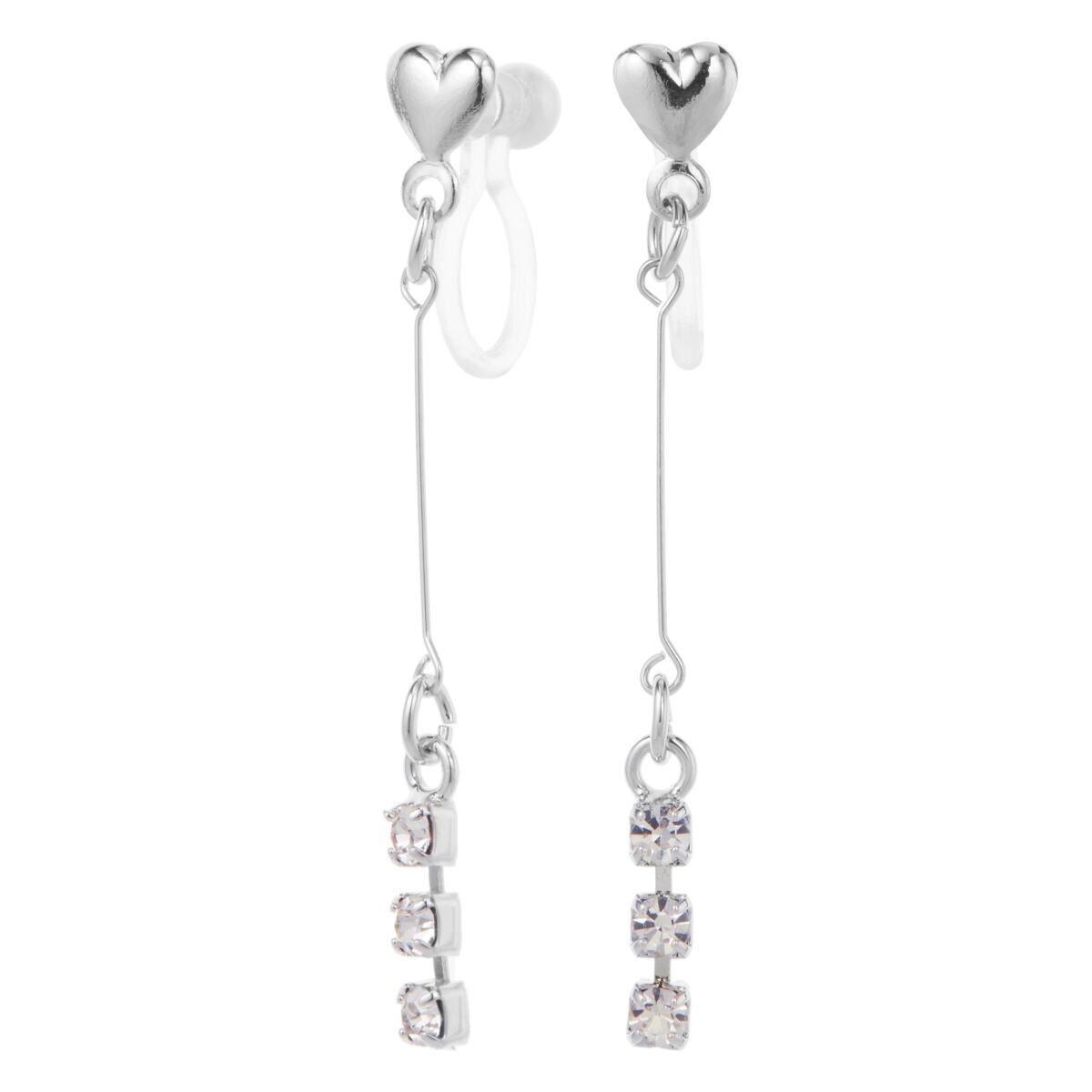 艶感のあるメタルハートから下げた3石ストーンが綺麗なクリアの透明感。