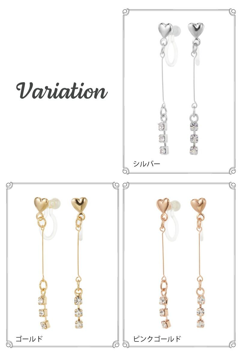 イヤリング レディース ノンホールピアス 日本製 金属アレルギー対応 3ストーン 揺れる フリンジ パール 樹脂オメガ シルバー ゴールド ピンクゴールド メール便 送料無料 春夏秋冬 大人気 あす楽