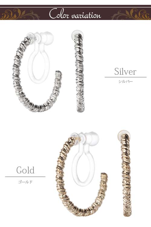 イヤリング レディース ノンホールピアス フープ 日本製 ロープ スクリューカット シルバー ゴールド 金属アレルギー対応 メール便 送料無料 春夏秋冬 大人気