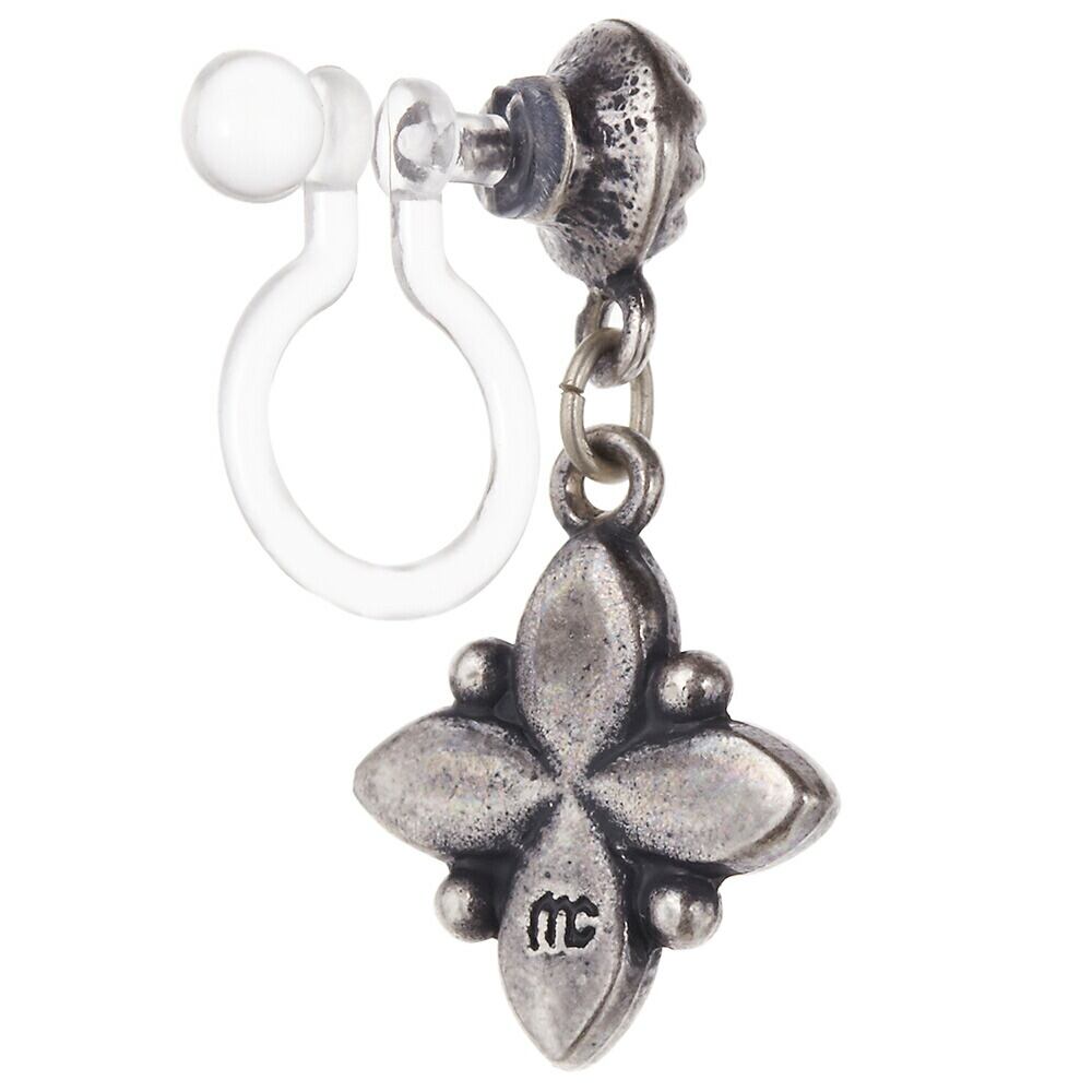 ターコイズカラーのフラワーチャームが付いたノンホールピアス(イヤリング)。
