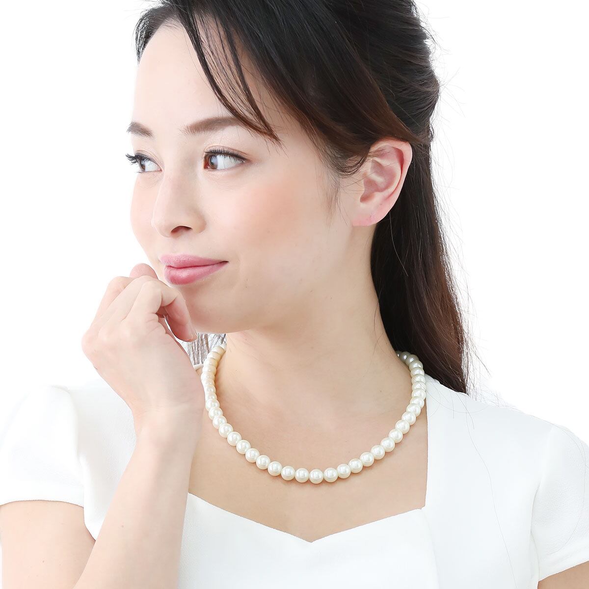 ネックレス レディース パール 真珠 首回り47cm 直径9ミリ ドレスに合う 大人 上品 気品 エレガント ゴージャス 美しい シンプル パーティー 誕生日 バースデー 結婚式 二次会 卒業式 入学式 冠婚葬祭 お葬式 弔事 フォーマル プレゼント ギフト 贈り物 メール便送料無料