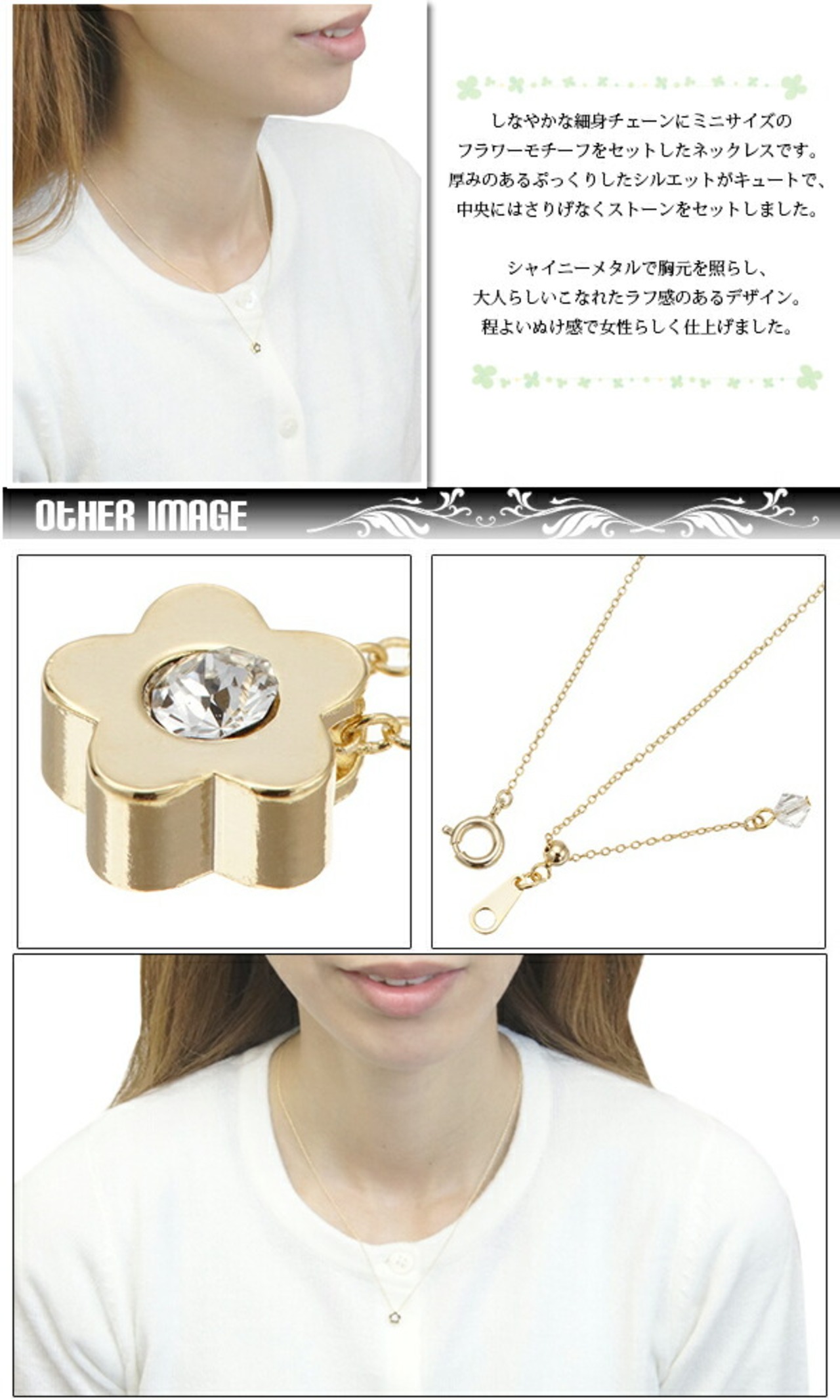 ネックレス ペンダント レディース ニッケルフリー 日本製 フラワー お花 中央にストーン ミニモチーフ 長さ調節可能 スライドビーズ あずきチェーン メール便 送料無料 秋冬 大人気