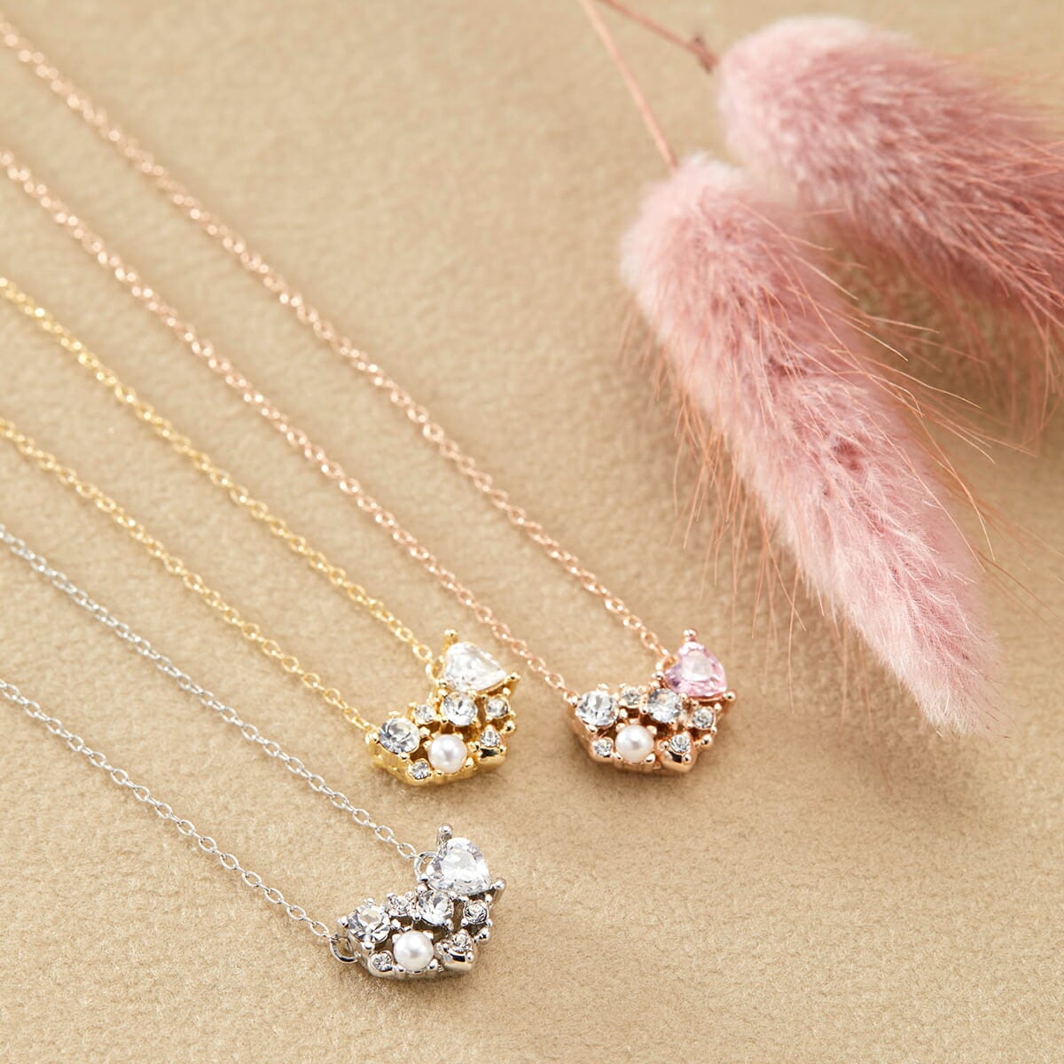 ネックレス レディース ニッケルフリー 日本製 ハート キュービックジルコニア フェイクパール おしゃれ 上品 かわいい きれいめ シンプル 華奢 大人 アジャスター シルバー ゴールド ピンクゴールド 肌に優しい 金属アレルギー対応 プレゼント ギフト メール便送料無料