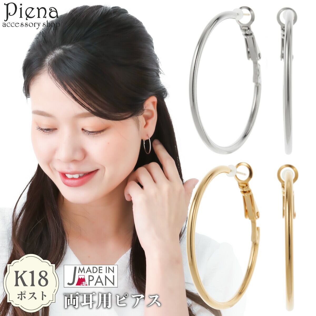 フープピアス レディース 両耳用 日本製 K18ポスト 18金ポスト ゴールド ビッグフープ 大ぶり 華奢 細身 シンプル お肌に優しい 金属アレルギー対応 上品 かわいい 大人可愛い オシャレ 誕生日 記念日 プレゼント ギフト メール便送料無料