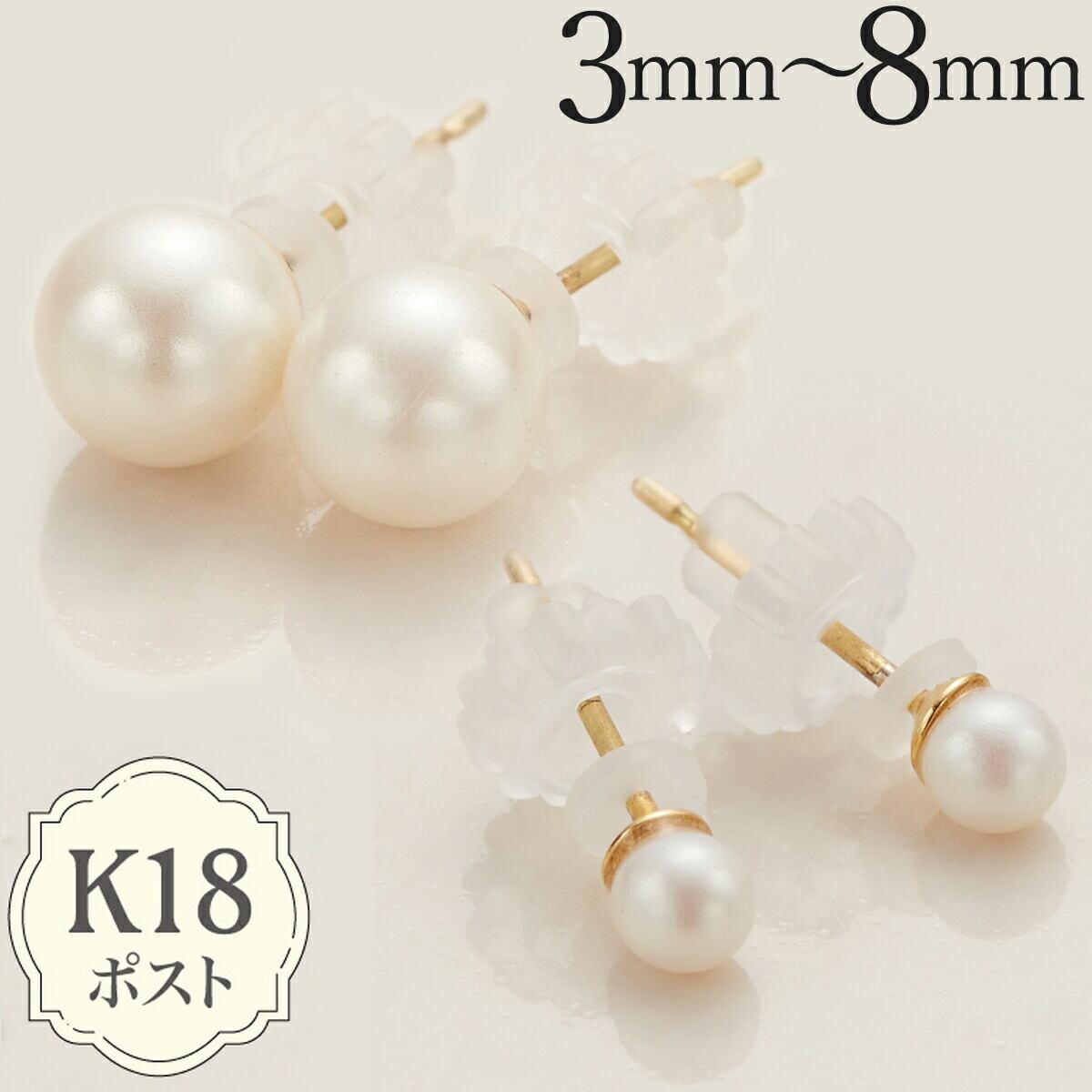 18金 パールピアス レディース 日本製 スタッド K18金製ポスト 金属アレルギー対応 3ミリ 4ミリ 5ミリ 6ミリ 7ミリ 8ミリ ミニ 大粒 真珠 フェイク シンプル メール便 送料無料 春夏秋冬 大人気