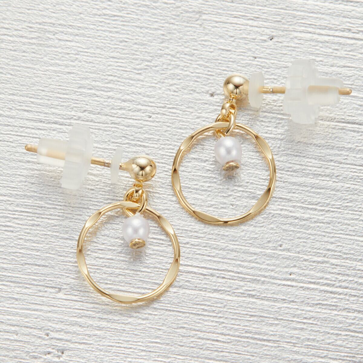 ピアス レディース K18ポスト 18金 K18ゴールド サークル ラウンド シンプル 揺れる パール お肌に優しい 金属アレルギー対応 上品 かわいい 大人可愛い オフィス パーティー 結婚式 誕生日 記念日 プレゼント ギフト メール便送料無料