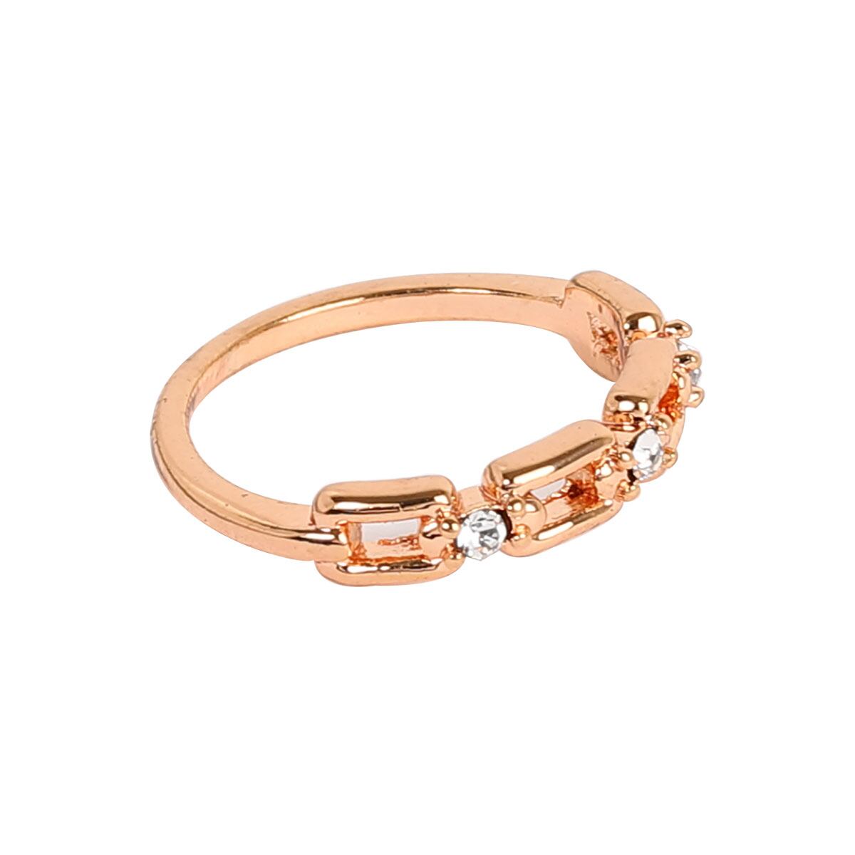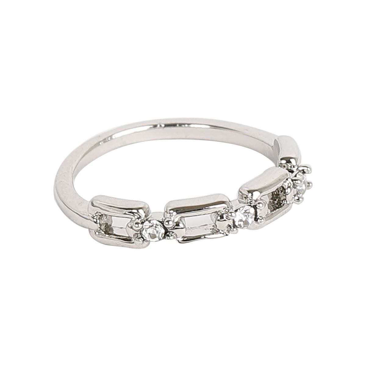 スクエア型チェーンの間にセットされた、ラインストーンが輝く上品なデザインの指輪です。