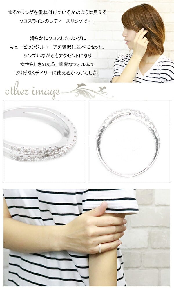 レディース 指輪 リング ダブルライン クロスライン 可愛い 綺麗 エレガント 華奢 ニッケルフリー キュービックジルコニア プレゼント ギフト メール便 送料無料 春夏秋冬 大人気