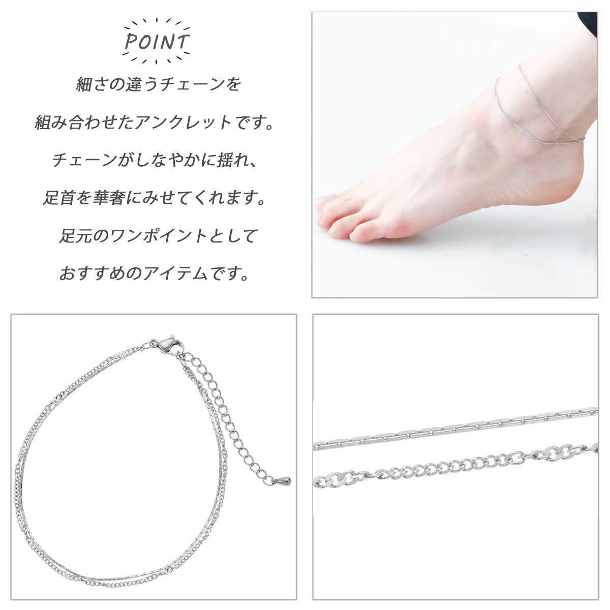 アンクレット レディース サージカルステンレス製 2連 チェーン 華奢 金属アレルギー対応 お肌に優しい 重ねづけ 上品 可愛い 繊細 綺麗 おしゃれ シンプル 普段使い カジュアル パーティー 誕生日 記念日 バースデー プレゼント ギフト 贈り物 メール便送料無料