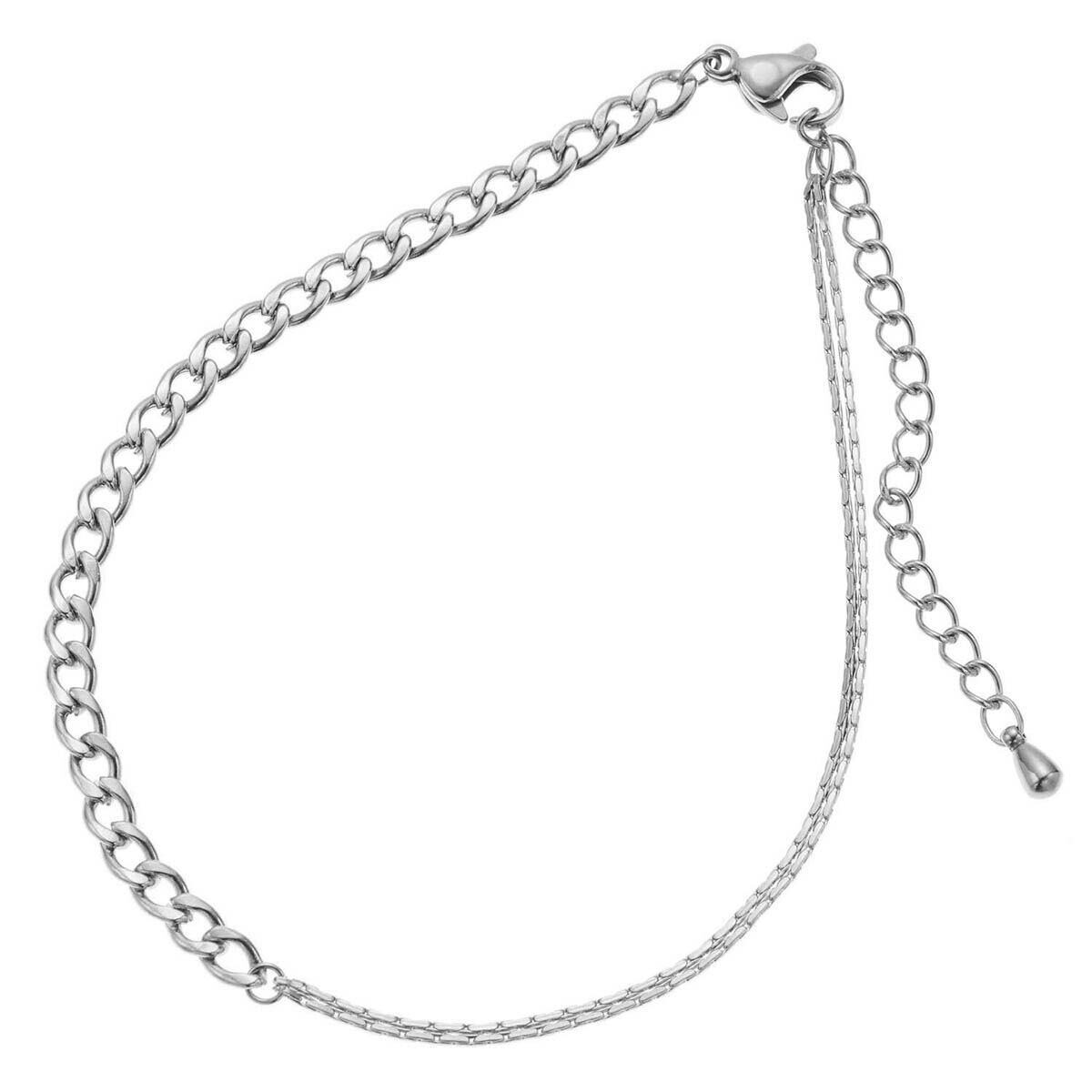 アンクレット レディース サージカルステンレス製 左右非対称 チェーン 金属アレルギー対応 お肌に優しい 重ねづけ 上品 可愛い 繊細 綺麗 エレガント おしゃれ シンプル 普段使い カジュアル パーティー 誕生日 記念日 バースデー プレゼント 贈り物 メール便送料無料