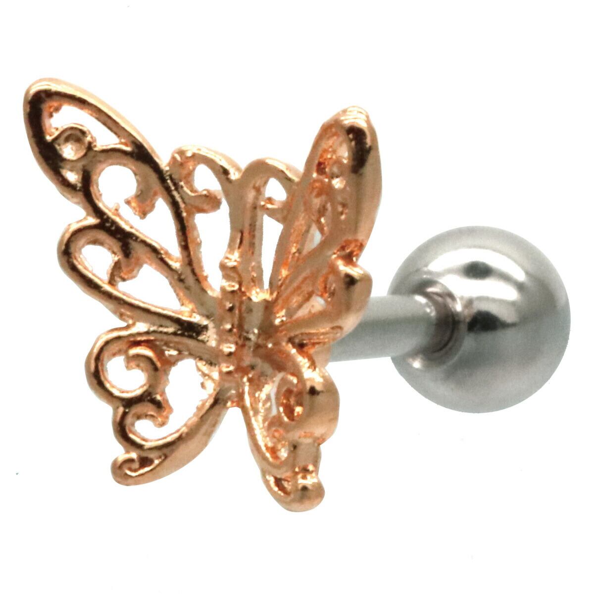 ボディピアス つけっぱなし レディース サージカルステンレス316L製ポスト 片耳用 1個売り 14G ストレートバーベル 蝶 バタフライ 虫 耳たぶ 軟骨 お肌に優しい 金属アレルギー対応 オシャレ かわいい 大人可愛い プレゼント ギフト メール便送料無料