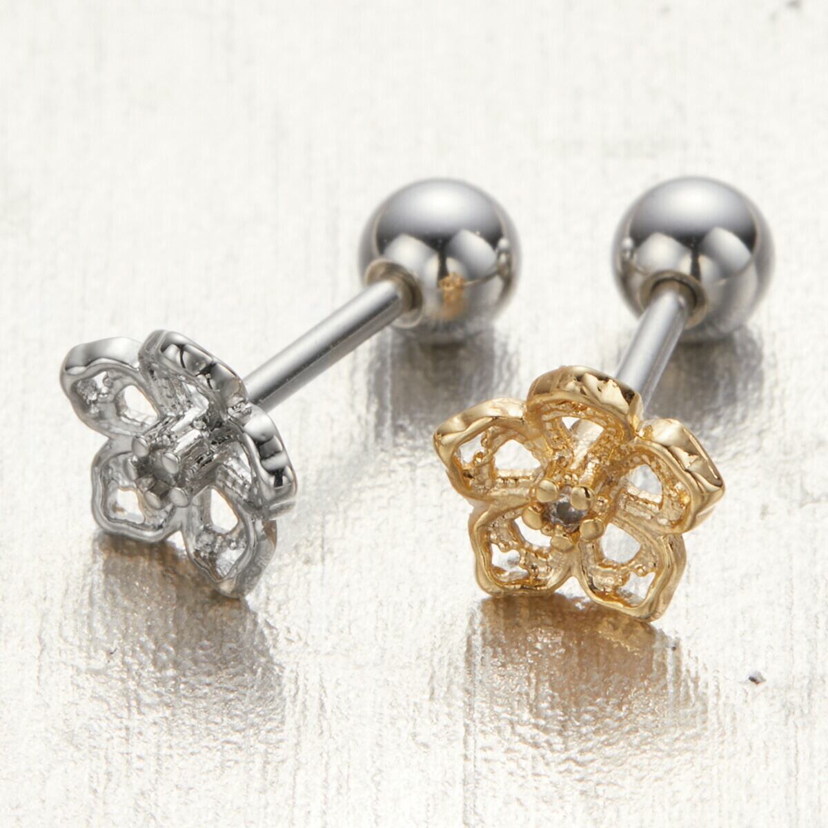ボディピアス つけっぱなし レディース サージカルステンレス316L製ポスト 片耳用 1個売り 18G ストレートバーベル 花 フラワー キラキラ 耳たぶ 軟骨 お肌に優しい 金属アレルギー対応 オシャレ かわいい 大人可愛い プレゼント ギフト メール便送料無料