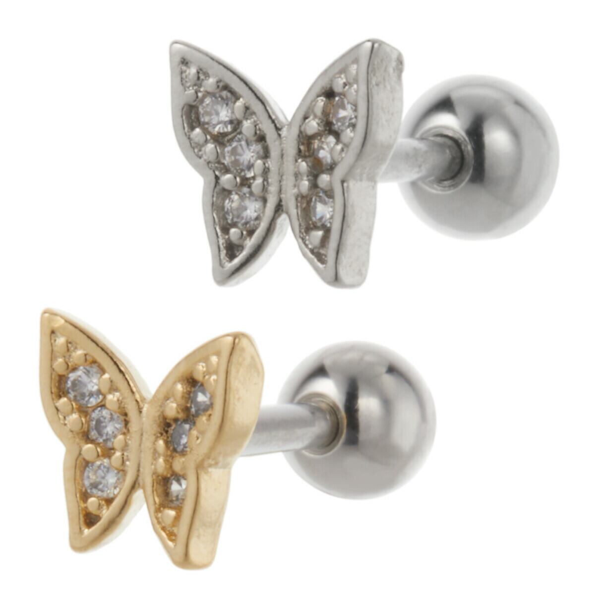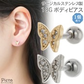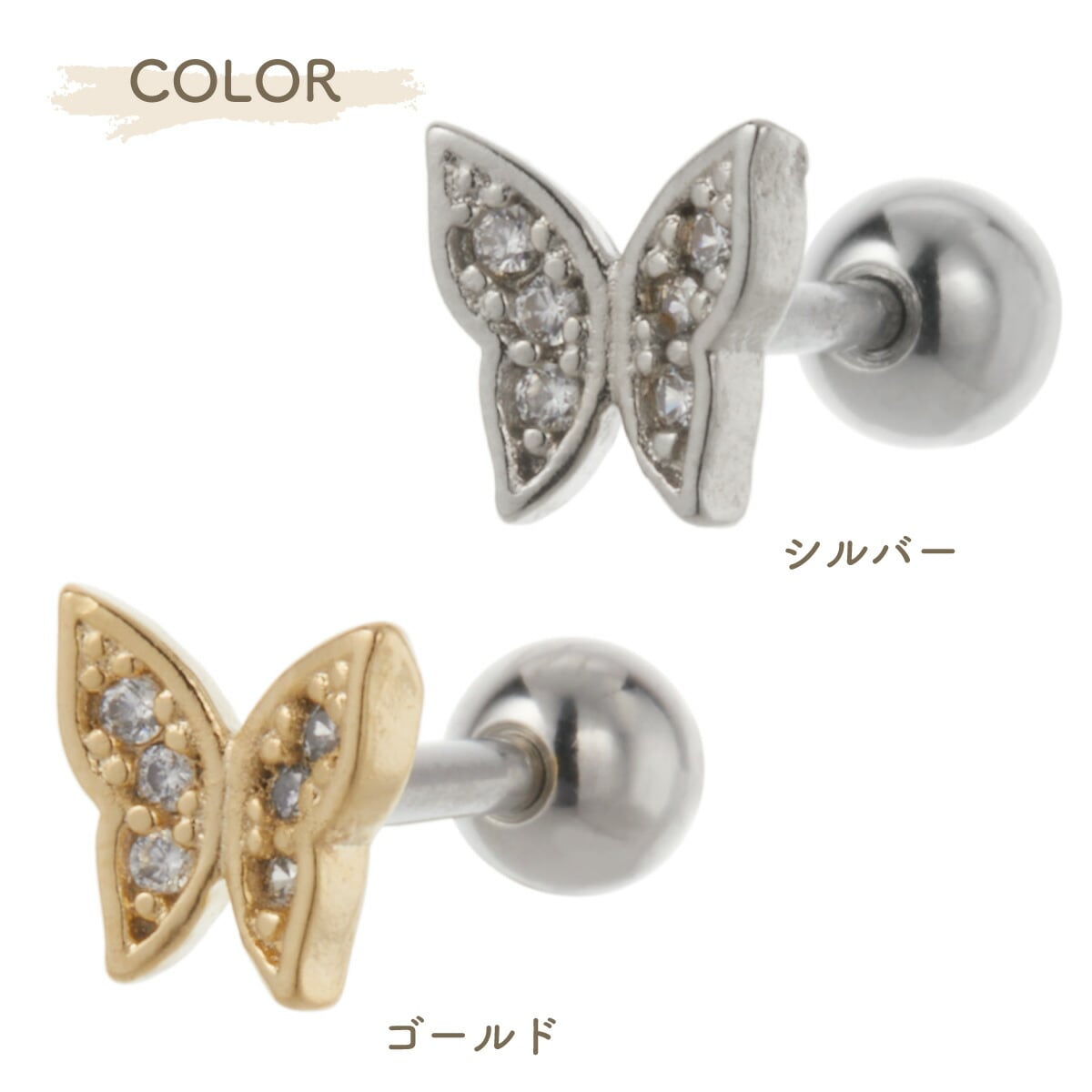ボディピアス つけっぱなし レディース サージカルステンレス316L製ポスト 片耳用 1個売り 18G ストレートバーベル 蝶 バタフライ キラキラ 耳たぶ 軟骨 お肌に優しい 金属アレルギー対応 オシャレ かわいい 大人可愛い プレゼント ギフト メール便送料無料