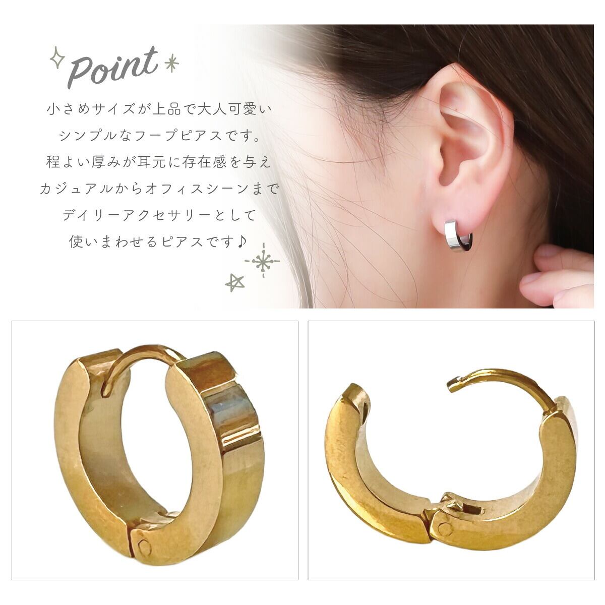 ピアス つけっぱなし レディース メンズ サージカルステンレス製 フープピアス つけっぱなし 平打ち ツヤ 艶 厚み4mm 小ぶり 中折れ 幅広 ワイド シンプル 片耳用 1個売り 上品 かわいい 大人可愛い 誕生日 記念日 プレゼント ギフト メール便送料無料