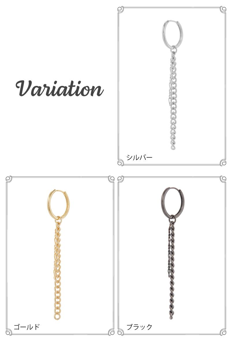 デザインの異なる2本のチェーンが揺れるフープピアスです。