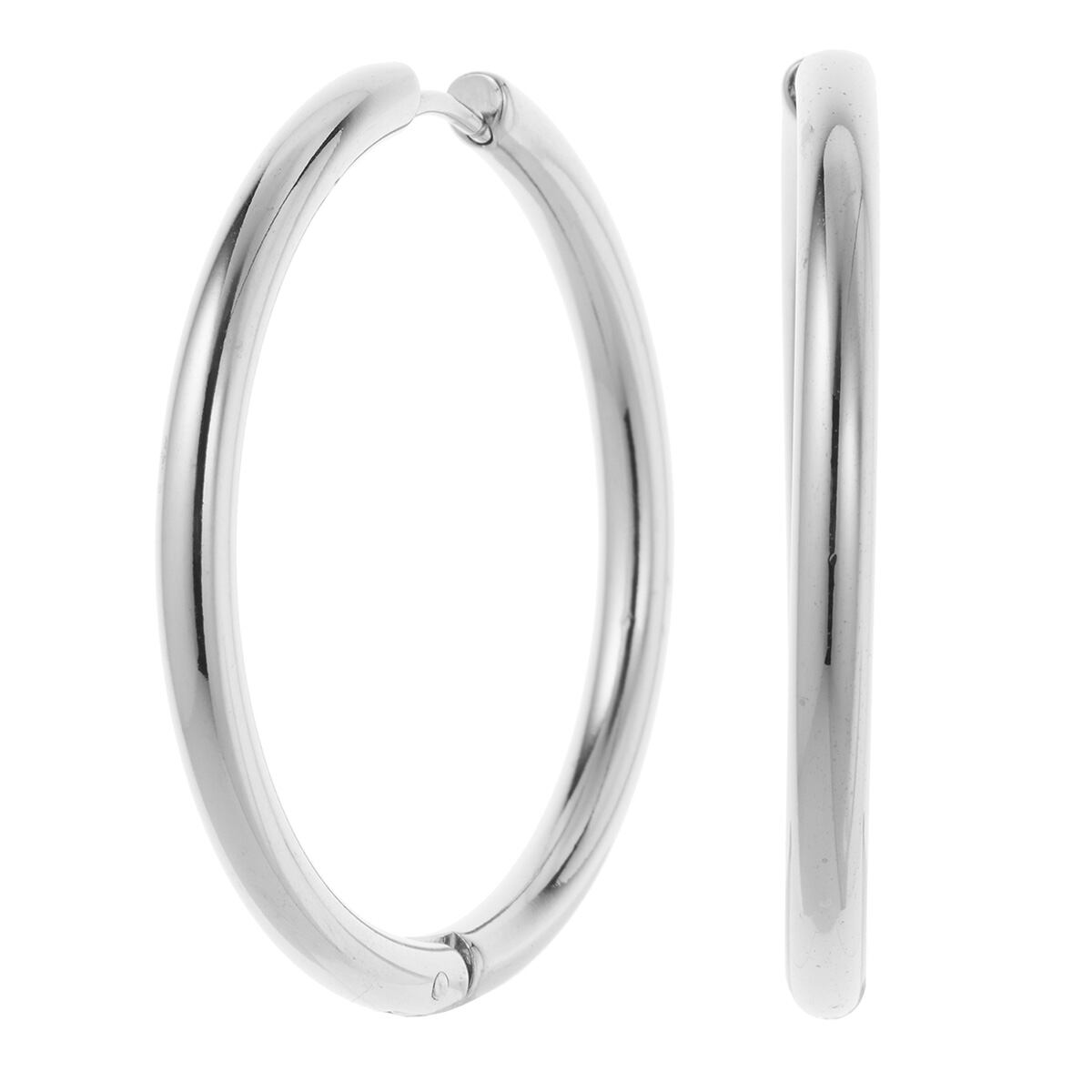フープピアス レディース サージカルステンレス製 3.5cm ワンタッチ キャッチレス 中折れ 着脱簡単 金属アレルギー 大きめ リング 輪っか 定番 シンプル スタイリッシュ 大人 カジュアル クール シルバー ゴールド 誕生日 記念日 プレゼント ギフト メール便送料無料