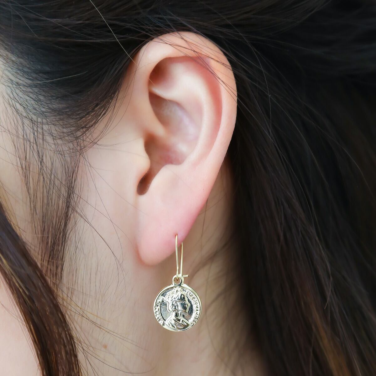 キドニーフックピアス レディース サージカルステンレス製 金属アレルギー ニッケルフリー エリザベス女王 コイン 彫刻 アンティーク風 ビンテージ風 古銭 金貨 ペソ お洒落 シンプル 大人 カジュアル シルバー ゴールド 誕生日 記念日 プレゼント ギフト メール便送料無料