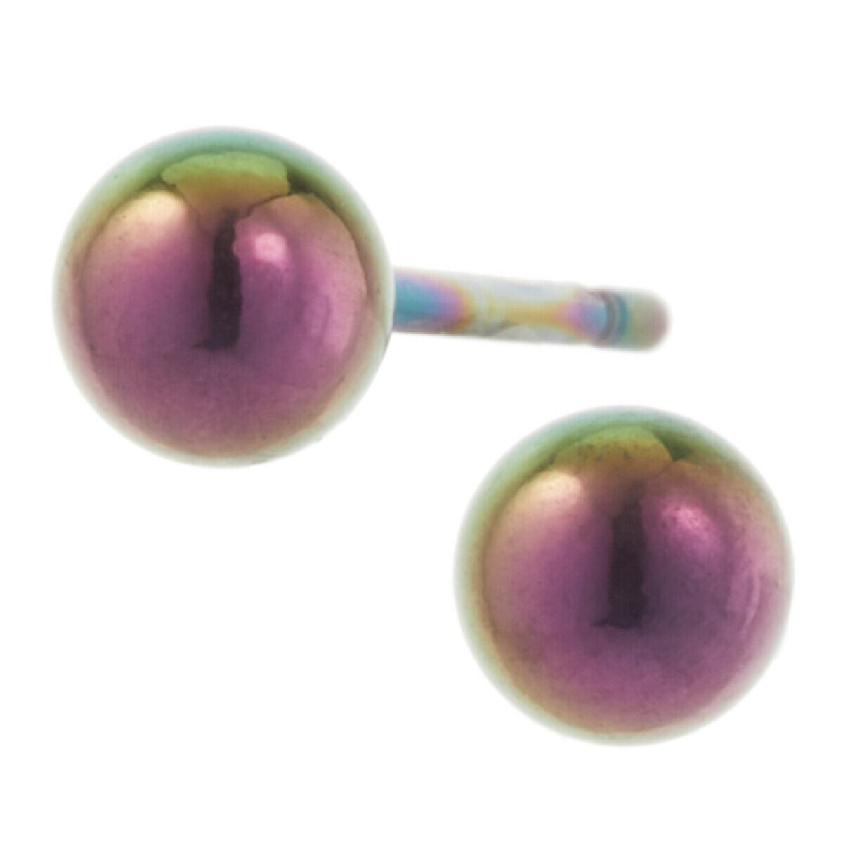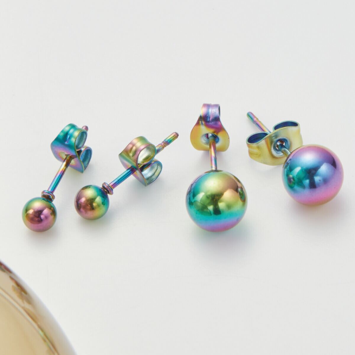 ピアス レディース メンズ サージカルステンレス製 丸玉 ボール レインボーカラー 虹色 4mm 7mm ミニ 小さめ シンプル ワンポイント お肌に優しい 金属アレルギー対応 プレゼント ギフト 誕生日 記念日 メール便送料無料