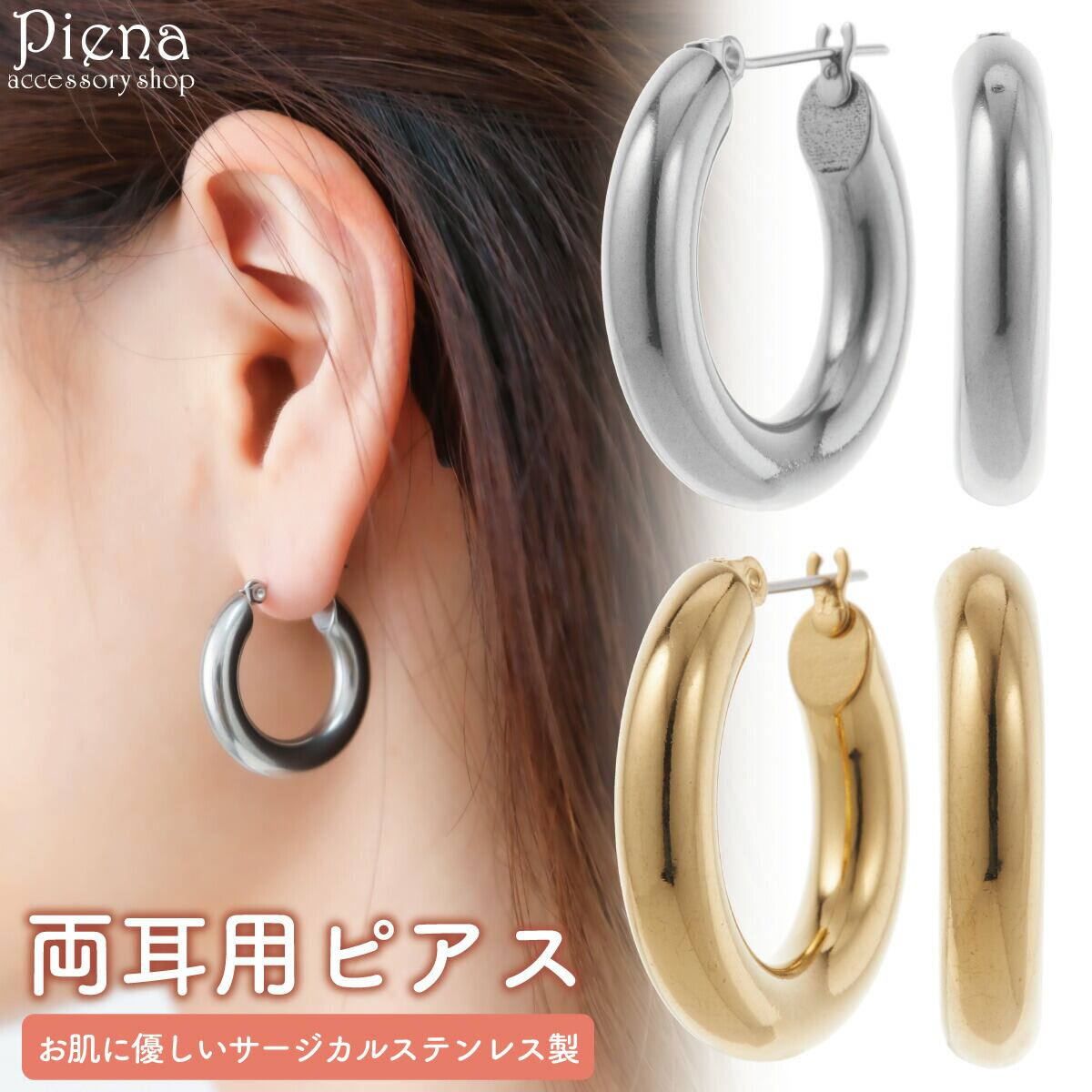 ピアス レディース メンズ サージカルステンレス製 フープ 幅広 ワイド 大ぶり 甲丸 丸み スナップ シンプル 上品 上質 お肌に優しい 金属アレルギー対応 かわいい 大人可愛い オシャレ 誕生日 記念日 プレゼント ギフト メール便送料無料