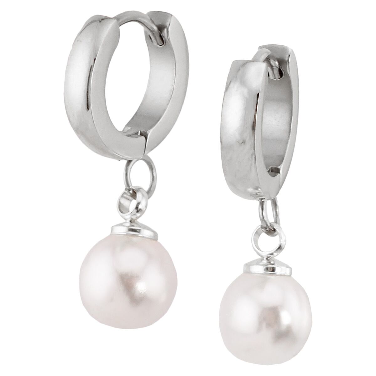 フープピアス レディース サージカルステンレス製 パール 1粒 1石 ワンストーン 揺れる 中折れ ワンタッチ シンプル ミニ 小さめ 両耳 おしゃれ 華奢 上品 可愛い 大人 パーティー 二次会 普段使い お肌に優しい 金属アレルギー対応 プレゼント ギフト メール便送料無料