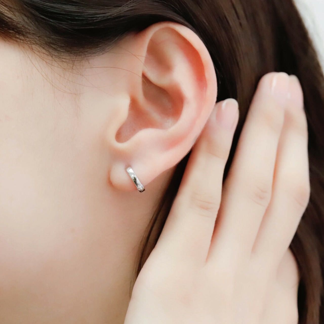 ピアス フープ レディース 両耳用 シルバー925 変色防止 ロジウムコーティング プラチナ加工 ニッケルフリー フープピアス 直径約1cm 平打ち 小さめ ミニ ワンタッチ 中折れ シンプル お肌に優しい 金属アレルギー対応 誕生日 記念日 プレゼント ギフト メール便送料無料