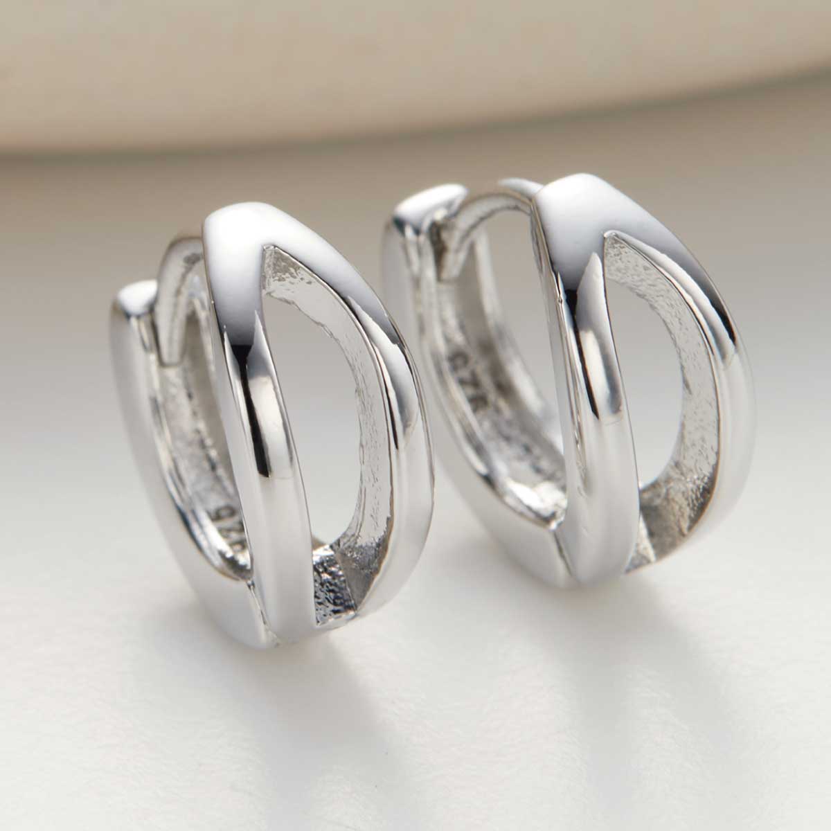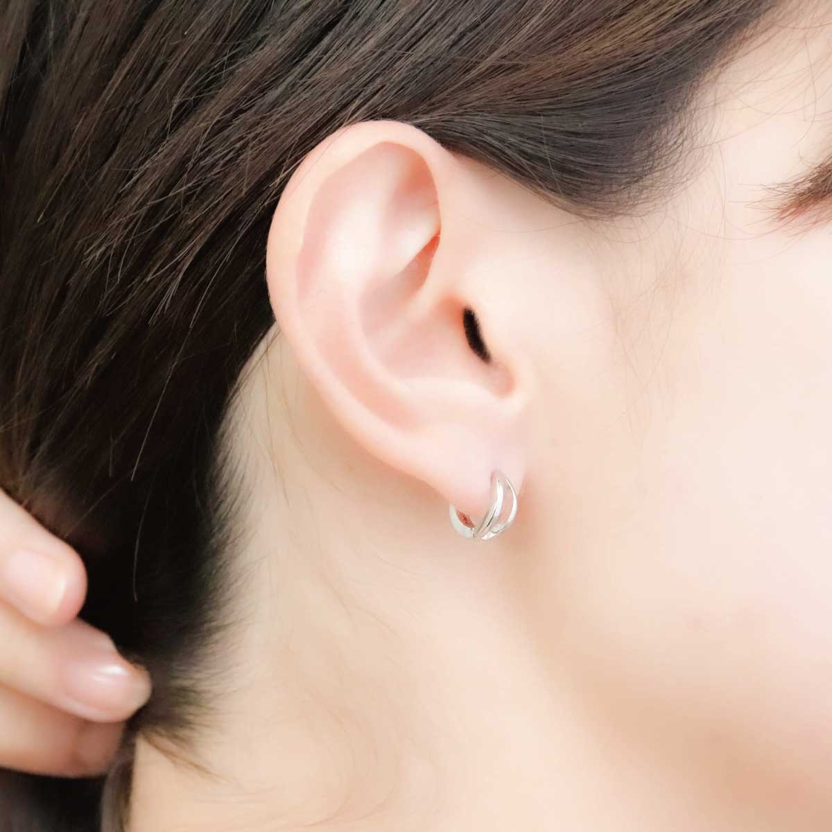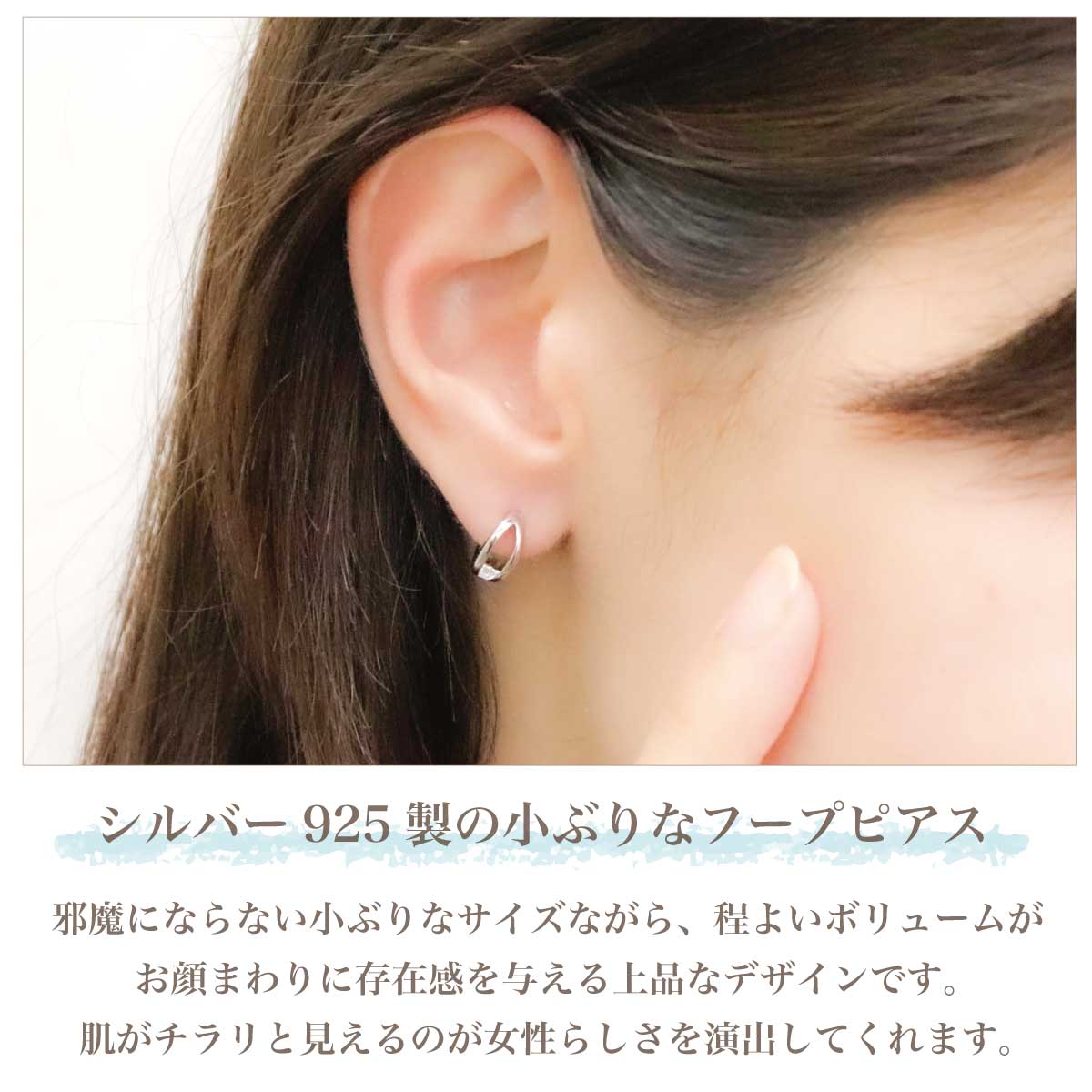 ピアス フープ レディース 両耳用 シルバー925 変色防止 ロジウムコーティング プラチナ加工 ニッケルフリー フープピアス 直径約1.1cm 二連風 ダブルライン 小さめ ミニ ワンタッチ 中折れ シンプル お肌に優しい 金属アレルギー対応 プレゼント ギフト メール便送料無料