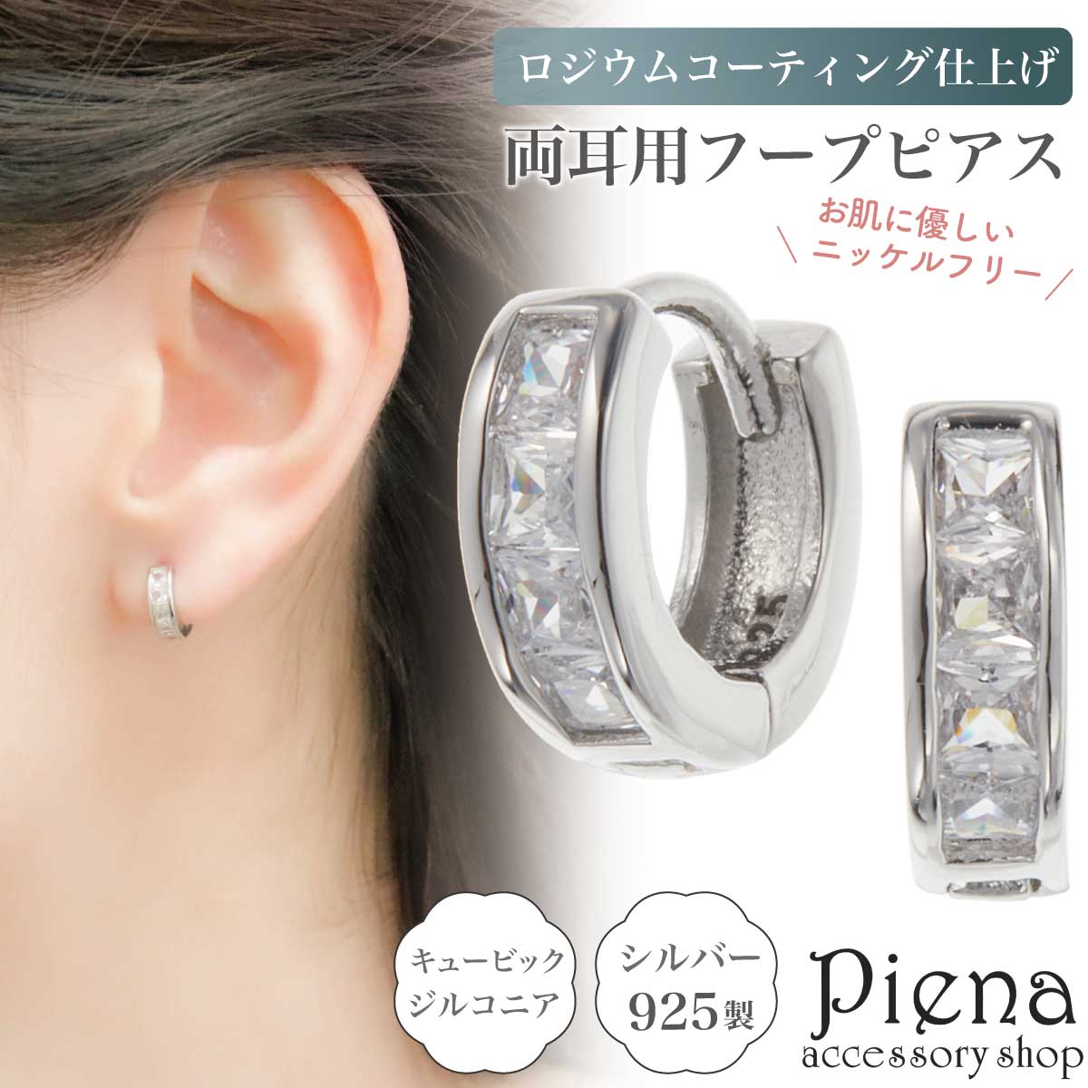 ピアス フープ レディース 両耳用 シルバー925 キュービックジルコニア 変色防止 ロジウムコーティング プラチナ加工 ニッケルフリー フープピアス 直径約0.9cm 幅広 小さめ ミニ キラキラ ワンタッチ 中折れ お肌に優しい 金属アレルギー対応 ギフト メール便送料無料
