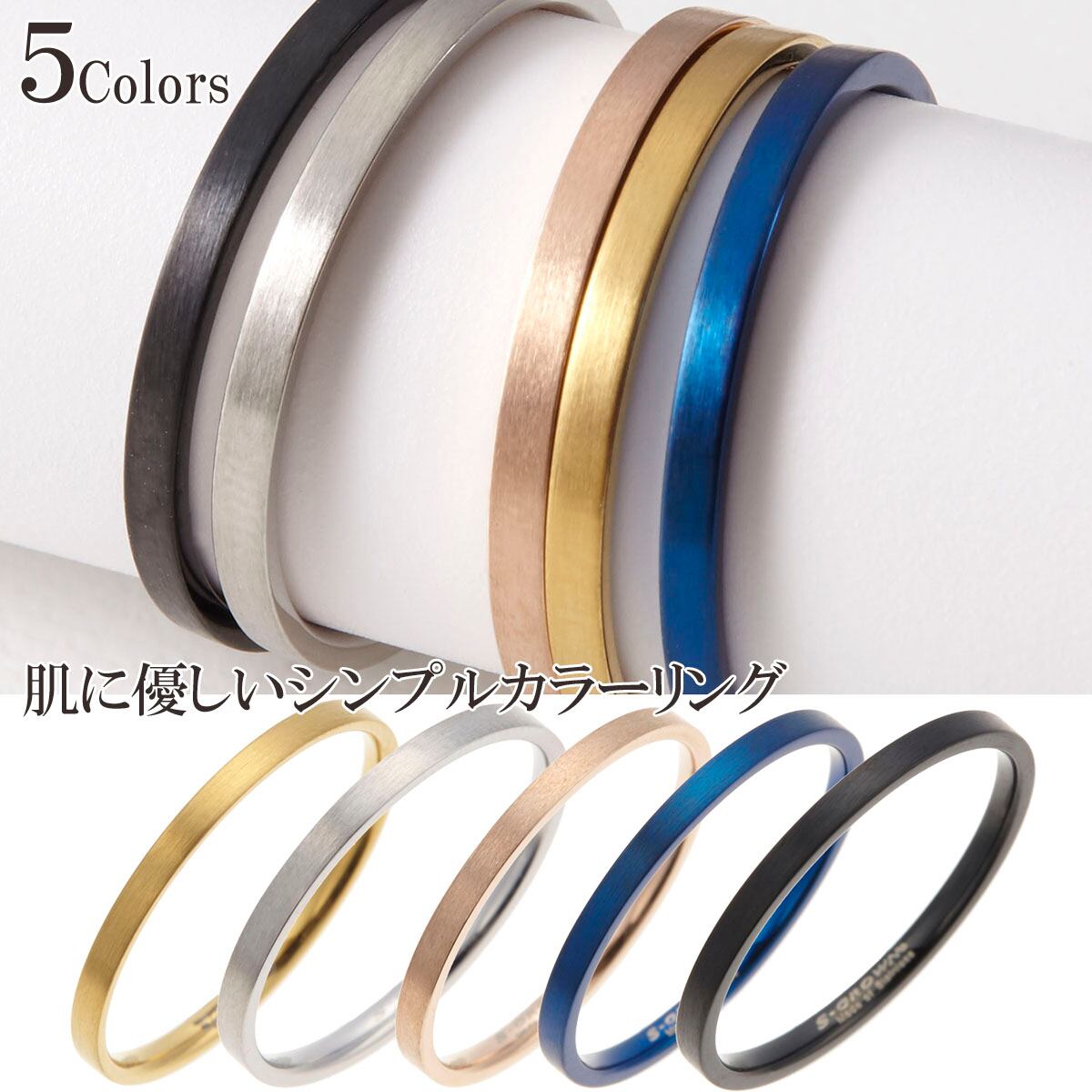 リング レディース シンプル カジュアル 平打ち つや消し サージカル ステンレス シルバー ゴールド ピンクゴールド ブルー ブラック 1mm 1ミリ 傷付きにくい S M 金属アレルギー 対応 安心 メール便 送料無料 春夏秋冬 大人気