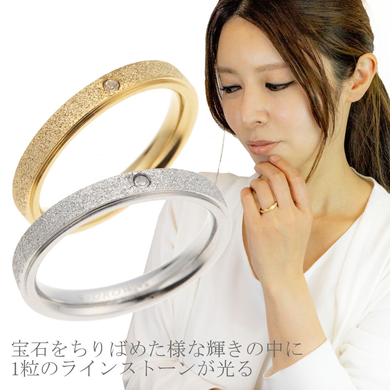 リング レディース サージカル ステンレス デザイン 平甲丸 ラメ風 加工 ラインストーン つや消し シンプル 肌に優しい 安全 幅 3mm 3ミリ M 金属アレルギー 対応 安心 メール便 送料無料 春夏秋冬 大人気