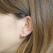 なめらかなカーブに5粒のラインストーンが輝くフープピアスです。