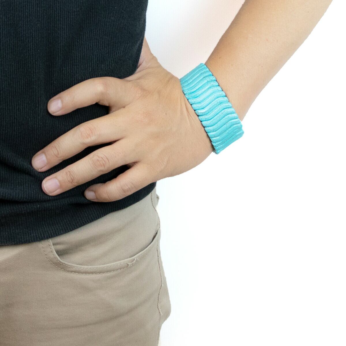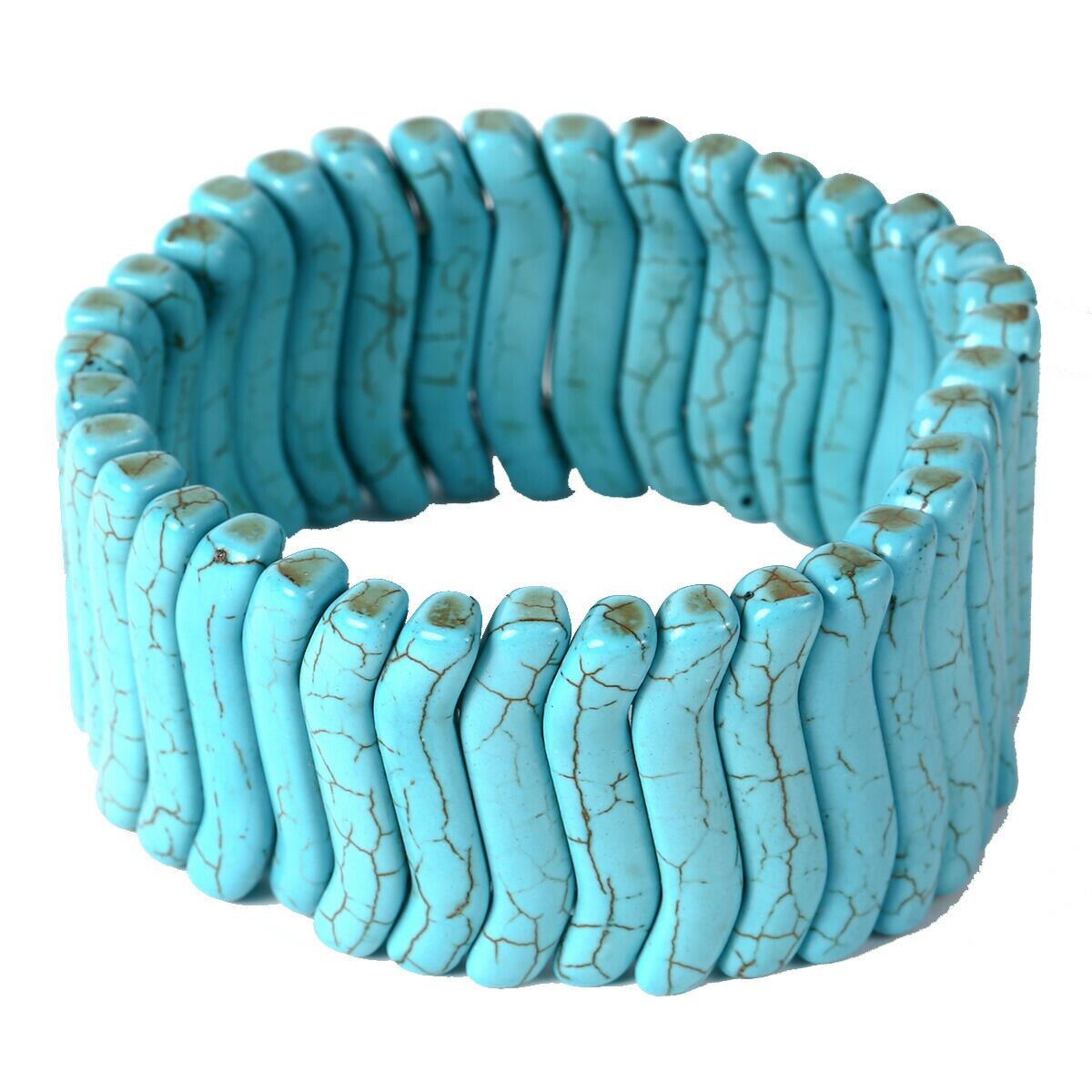 ブレスレット レディース バングル メンズ ユニセックス 兼用 ブレス アクリル ゴム 簡単着脱 ターコイズ風 おしゃれ カッコいい 太め 存在感 ブルー プレゼント ギフト メール便 送料無料 青色 水色 トルコ石 春夏秋冬 大人気